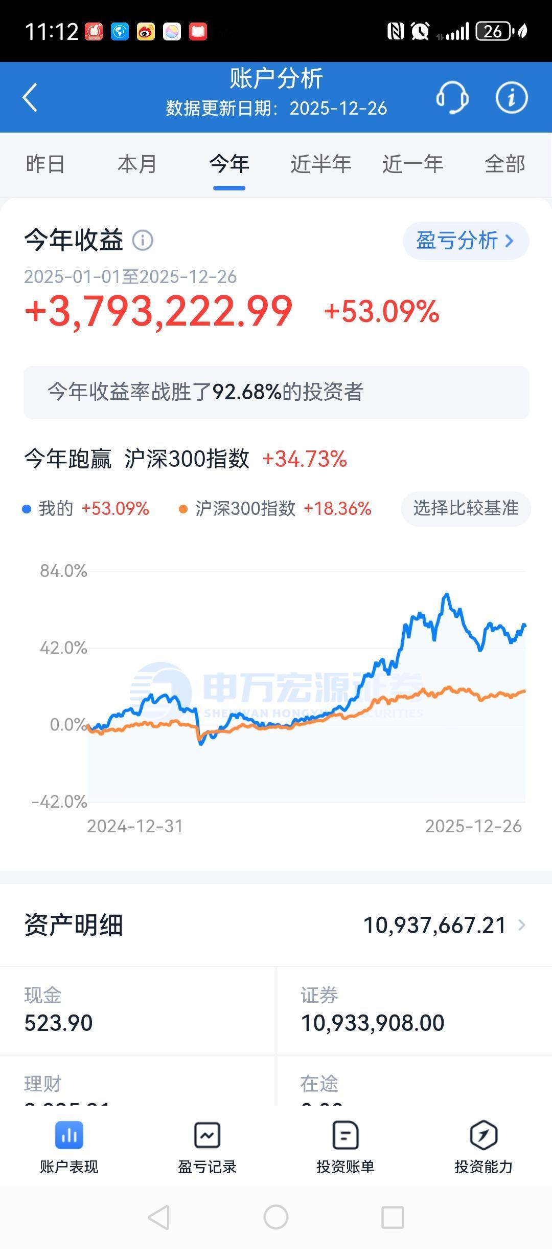 今年10月份市场调整之前,我的账户是翻倍的,最高时120%左右。 最近两年市场的主流是核心科技股。 得科技者得天下,我本人是将科技股行情坚决进行到底的! 科技分为两大块,一个是不能让美国人卡脖子的科技,主要是指芯片半导体机器人人工智能等。另一个是我们要卡美国人脖子的科技,包括我们完整产业链和拥有核心技术的新能源,稀土加工和提炼技术等。 今年上半年,人工智能和机器人表现靓丽。进入10月份以后,部分有色金属期货价格创出历史新高,进而带动个股大幅上涨。 附图:我的收益和持股。你所看到的股票,都已持仓好几个月,甚至有些已经持仓一年左右。 精彩在后头!元旦过后更精彩!