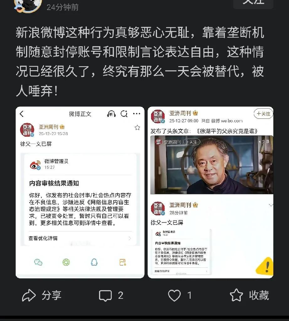 并不觉得新浪微博删除徐湖平的父亲究竟是谁一文有什么问题。