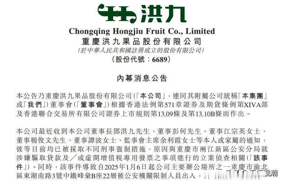 【从670亿市值到黯然退市:洪九果品的两年警示】 2022年9月,洪九果品登陆港交所,凭借“端到端”水果供应链模式,一度创下670亿港元市值,创始人邓洪九也完成了从朝天门扁担小贩到上市公司老总的蜕变。然而短短两年,这家“水果第一股”便因危机缠身黯然退市,其跌宕轨迹,为市场敲响了警钟。 邓洪九的创业史,是专注深耕的范本。17岁入行,他从产地直供生意起家,深耕水果行业三十余年,布局海外采购基地,成为国内头部榴莲分销商,用“爱一行专一行”的韧性,敲开了资本市场的大门。但上市后的激进扩张,却暴露出能力与野心的失衡。由于缺乏资本市场运作的专业知识,公司未能破解“高预付、长应收”的现金流困局,2023年上半年,贸易应收款超百亿,账面现金却不足6亿元,资金链濒临断裂。更因大额异常预付款交易存疑,审计机构辞任,直接触发停牌危机。 家族式治理的短板,更是加速了企业崩塌。洪九果品核心岗位多由邓洪九家族成员把控,外部专业人才难以介入决策,董事会监督机制形同虚设,当独立非执行董事集体辞职,公司治理彻底陷入瘫痪。反观行业同行,凭借职业经理人架构与规范治理体系,实现了稳健发展,两者对比,高下立判。 2024年3月,因未能按时披露年报,洪九果品正式停牌。随后核心高管涉案被查,公司运营停滞,债务重整无果,最终难逃退市结局。其股价较发行价暴跌超95%,数百亿市值化为乌有。 洪九果品的起落,留下深刻启示:专注是创业的基石,但企业迈向更高阶段,必须以匹配的专业能力、规范的治理体系为支撑。创始人的野心需量力而行,唯有能力适配野心、治理支撑规模,才能在市场浪潮中行稳致远。