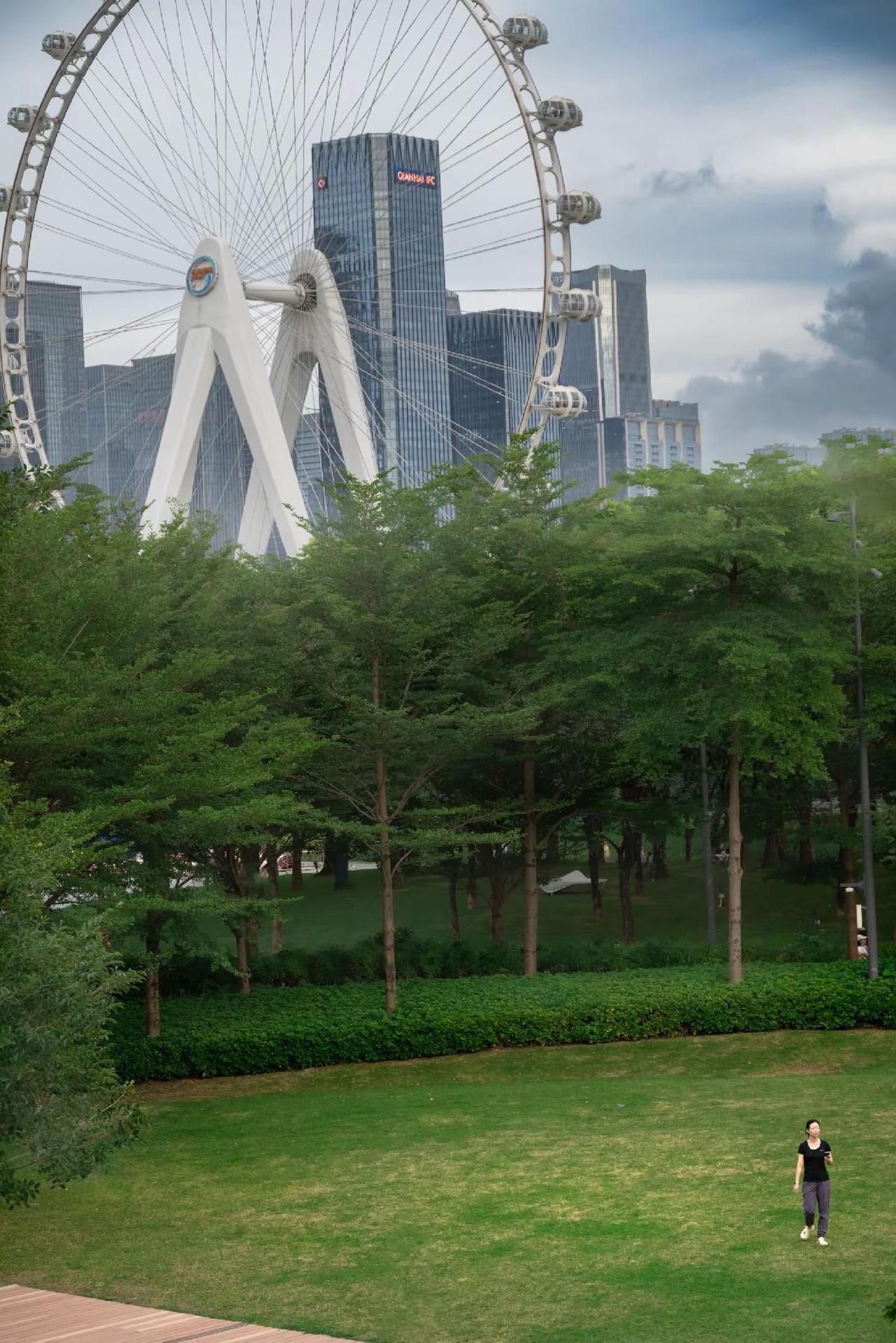 《没有Z30的我怎么办?》深圳欢乐港湾,摩天轮下踢球的母子。尼康相机:拍摄参数A档光圈优先、光圈F6.3、ISO 100、快门1/100秒、矩阵测光、白平衡,自然光自适应、点 自动对焦、Raw格式、手机版LR后期。尼康Z5~24~200镜头