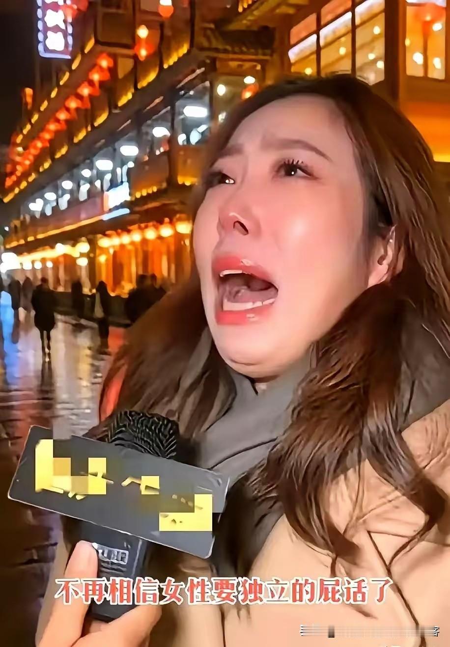 一条三分钟的街访把很多人看哭,成都春熙路,35岁的Y女士对着镜头失声,她说自己当年刷小红书刷到天亮,记住了“女孩别委屈自己”的口号,结果真把自己活成了孤岛,她没有删减的原话在B站热度破百万,评论区里“别学我”的弹幕一片。 Y女士的哭诉里藏着太多人的影子。她当年把“别委屈自己”当成人生信条,同事求助直接拒绝,朋友约饭觉得麻烦推脱,家人催婚更是怼得不留情面。 算法不断给她推送“独处才高级”“讨好型人格最可悲”的内容,让她误以为拒绝所有妥协就是爱自己,却忘了人与人之间的联结本就需要互相迁就。等她意识到身边空无一人时,想回头却发现,那些被她推开的人早已渐行渐远。 这哪里是爱自己,分明是被流量话术带偏了方向。平台上那些煽动性的口号,把复杂的人际关系简化成“要么委屈自己,要么成全自己”的二元对立。 MCN机构批量生产着“恶婆婆”“渣男”“无效社交”的爆款剧本,用极端案例制造焦虑,再包装成“女性觉醒”的鸡汤售卖。算法精准捕捉到年轻人的迷茫,不断投喂同类内容,慢慢织成一个密不透风的信息茧房。 “女孩别委屈自己”本身没错,错的是被曲解成了自私自利的挡箭牌。向太说“女生别当软柿子”,强调的是维护正当权益的坚定,而非对所有关系都横眉冷对。 真正的爱自己,是懂得拒绝不合理要求,也愿意为值得的人付出;是保持独立人格,也不排斥适度妥协。可太多人被流量话术洗脑,把“自我”当成了隔绝世界的堡垒。 评论区的“别学我”,是Y女士的悔恨,也是无数人的警醒。我们总在网上寻找人生答案,却忘了每个故事都有专属语境,每句口号都可能藏着商业陷阱。那些让你刷到天亮的内容,未必是真理,可能只是为了收割流量的情绪商品。 人与人之间的温暖从来不是单方面的索取,而是双向的奔赴。别让算法定义你的生活,别让爆款口号绑架你的人生。真正的自我觉醒,是有能力分辨是非,有勇气平衡自我与他人。 各位读者你们怎么看?欢迎在评论区讨论。