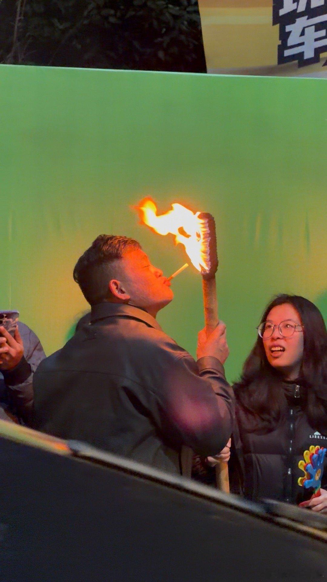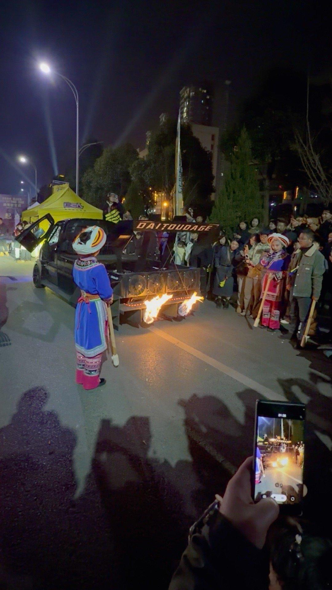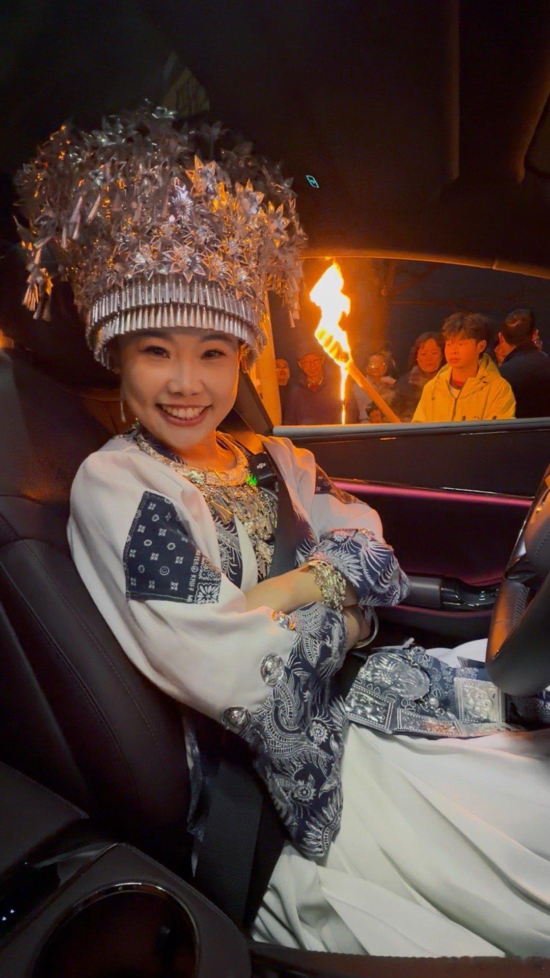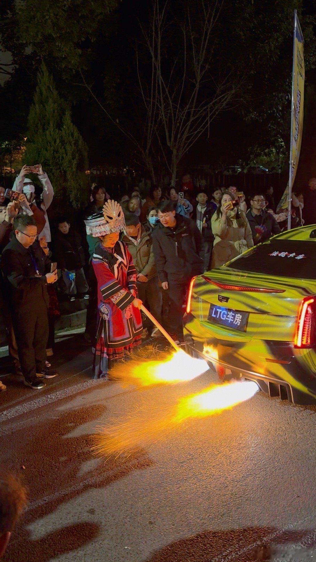 贵州人民真的又热情又松弛,能用排气喷火点燃火把,也能用火把顶着脸点烟贵州村GT太有氛围了~~村民们举着几百支火把给巡游车队开道,一路各种欢呼面对喷火烧胎,没有人躲,只有人大喊再来一次看到我一个外地人穿上苗族服饰,可劲就是夸,情绪价值给满贵州村gt 黔西南·晴隆