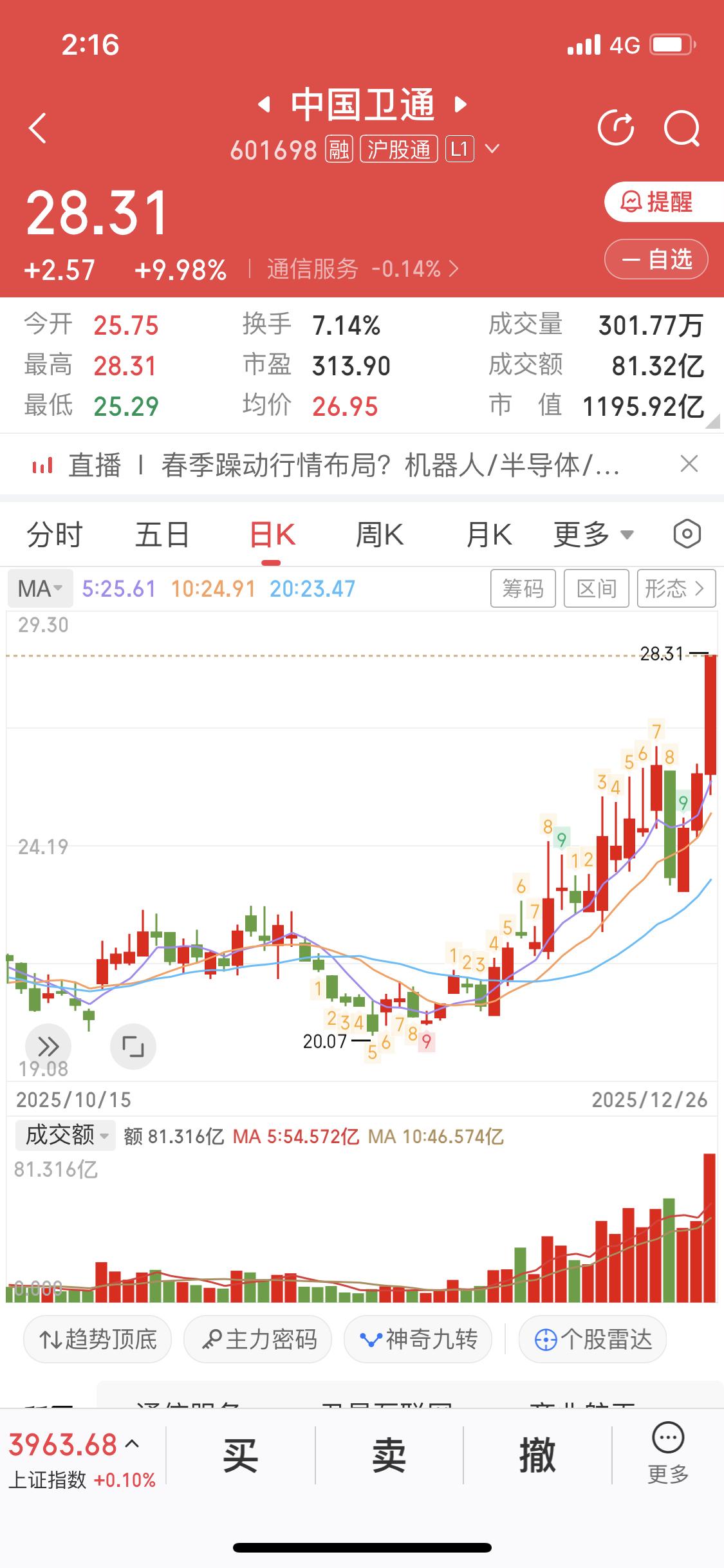 周末商业航天企业出了利空消息,像Rocket Lab Corp跌8.46%,AST SpaceMobile Inc - A跌7.82%,维珍银河跌5.39%。下周一要是资金不认商业航天,板块出现回调,我觉得这反而是个上车的好机会。 我比较关注中国卫通和航天发展,打算择机进入。虽然现在商业航天概念受挫,但长期来看,这个领域发展潜力巨大。就像科技板块里的芯原股份,虽然二股东大基金减持,但公司基本面没问题,或许减持是产业资本正常布局。商业航天也可能如此,短期回调后说不定会迎来新的上升。
