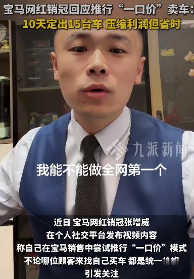 山东济南的宝马销售冠军张增威搞了个“一口价”卖车的新玩法,结果10天就定出去15台车,连线上咨询都忙不过来。这事儿为啥能引发热议?还得从大家买车时的痛点说起。 以前去4S店买车,最让人头疼的就是“砍价大战”。销售先报个虚高的价格,顾客得反复拉锯,还得防着各种隐形消费比如金融服务费、强制装潢、高价保险,甚至不同顾客拿到的折扣都不一样。有人研究过,传统议价平均要耗时3个多小时,不少人砍完价反而更焦虑,总担心自己是不是买贵了。张增威干了9年销售,发现很多客户其实不是贪便宜,而是被这种“极限拉扯”搞得身心俱疲。 于是他干了件在传统4S店体系里挺“叛逆”的事儿:直接亮出底价,所有客户统一价格,不还价、不返利、不玩套路。就像去菜市场买菜明码标价,省去了讨价还价的环节。结果这个尝试效果惊人8天卖出11台车,有个客户连面都没见,光看报价单就直接线上订了辆宝马X3。 为啥这个模式能成?核心就俩字:省心。现在年轻人买车,最看重的就是效率和确定性。有调查显示,90后购车者对“无需议价”的满意度高达89%。张增威的客户里,很多人宁愿多花点时间了解配置,也不想在价格上反复纠结。他把自己从“谈判专家”变回“产品顾问”,用透明换信任,反而让客户觉得更踏实。 不过这事儿也不是没争议。有人质疑“一口价”是不是噱头,背后会不会捆绑高额保险或强制保养?张增威倒挺实在,他说这模式确实压缩了自己的利润以前客户谈不到底线就成交,现在每单都是底价,只能靠附加业务提成。但他觉得,如果销量够大,省下来的时间和精力能弥补这部分损失。 更值得玩味的是,这个个人尝试背后藏着行业大趋势。特斯拉等新能源品牌早就用直营模式把价格透明化了,现在传统豪华品牌也被逼着转型。宝马虽然没官方授权“一口价”,但已经在用AI优化购车流程,提升体验。张增威的成功,本质上是新能源浪潮倒逼传统销售改革的缩影当年轻消费者不再愿意为“信息差”买单,传统套路自然就失效了。 当然,这个模式现在还没法复制到全行业。张增威能成,靠的是9年积累的口碑和客户信任,普通销售没这基础。而且4S店的盈利结构复杂,价格受库存、区域政策影响大,强行统一价可能和体系冲突。但不管怎么说,这场实验至少证明了一个道理:在信息越来越透明的时代,真诚和省心,才是最硬的竞争力。 来源:九派新闻