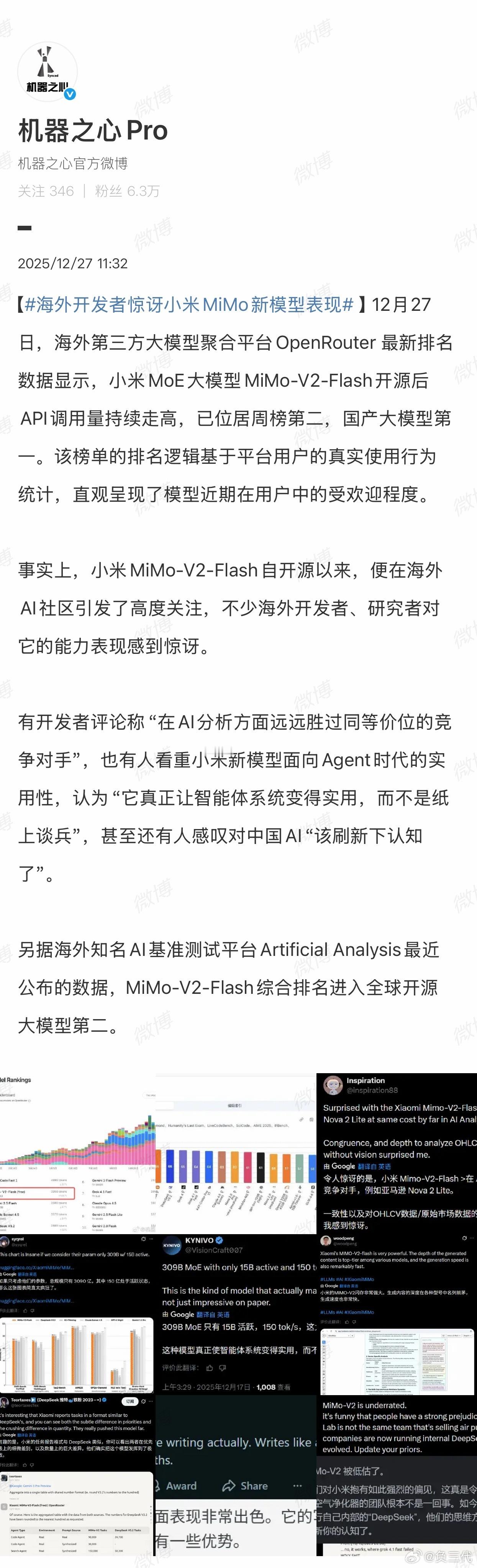 小米在另外一个领域又把性价比玩出花了!小米MiMo-V2-Flash 309B总参数只激活15B,就主打一个轻装上阵不费资源,结果是把代码能力卷到开源第一,修bug胜率73.4%效率高也就算了,价格被小米打到了0.7元/百万token,成本是同级闭源模型的2.5%,是的,2.5%,同样的活小米只有人家1/40的成本。现在还限时免费,有需要的抓紧!