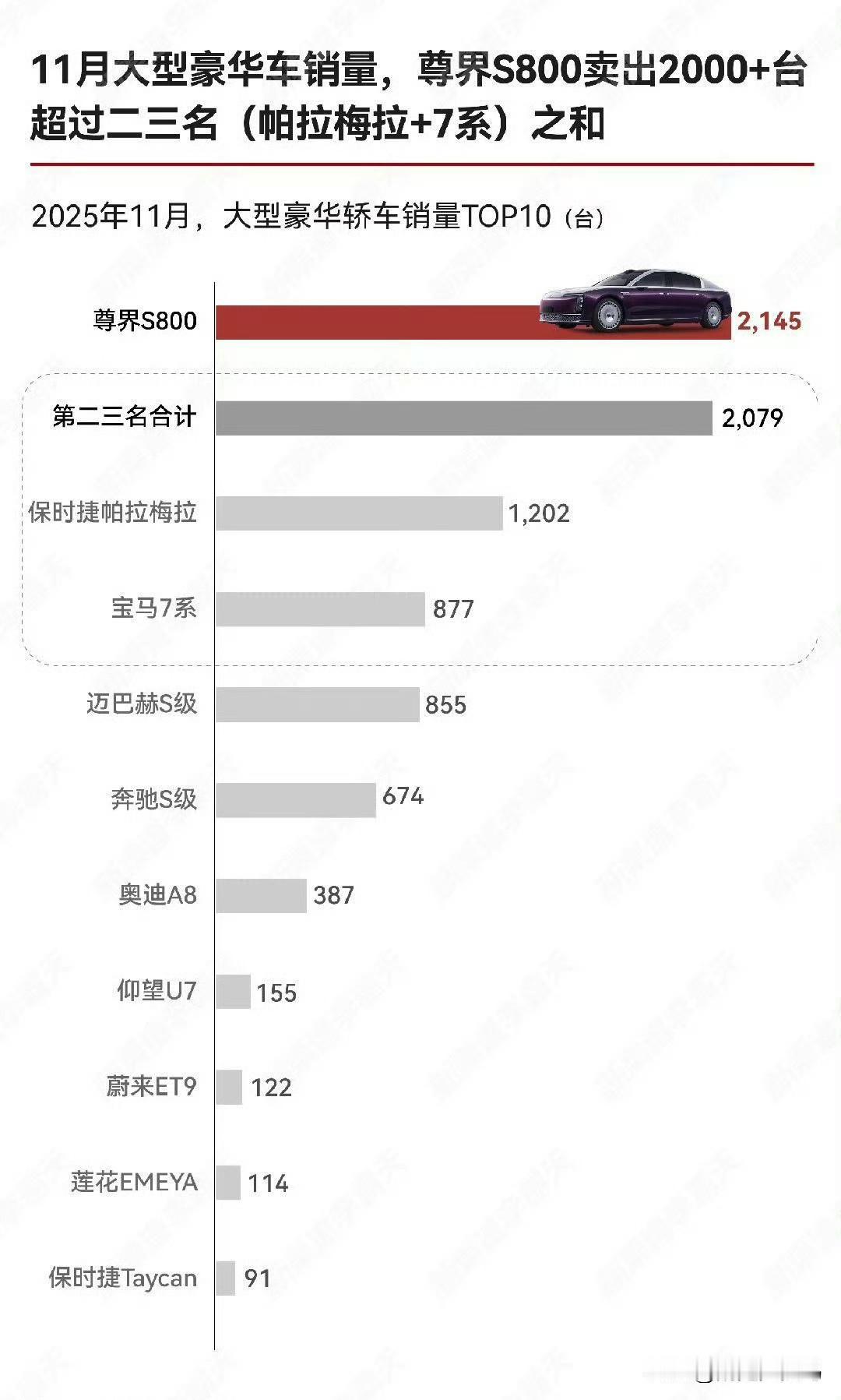 今年最成功的品牌和车型是尊界S800,你们同意吗?现在已经在超豪华D级市场站稳脚跟了,11月销量甚至比第二第三名(帕梅+宝马7系)加起来还多