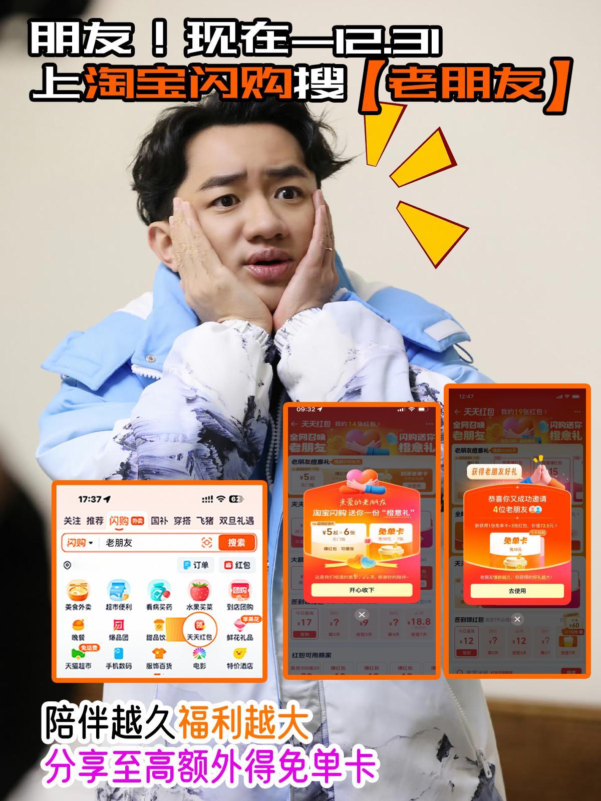 王祖蓝喊你回淘宝闪购领老友福利哇塞老朋友王祖蓝和淘宝闪购一起送的这波老友福利我先享用了!账号注册时间越长,红包金额越大,还有至高7张免单卡可以领!以上很多福利就在淘宝闪购🔍「老朋友」~而且分享给好友,还能额外再得免单卡,这波省钱的实惠福利谁不喜欢啊淘宝闪购请回老朋友这波回忆杀淘宝闪购全网寻老友