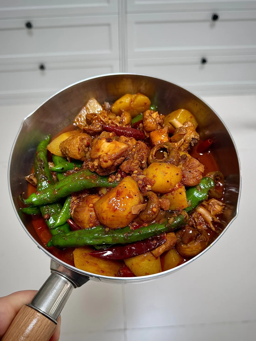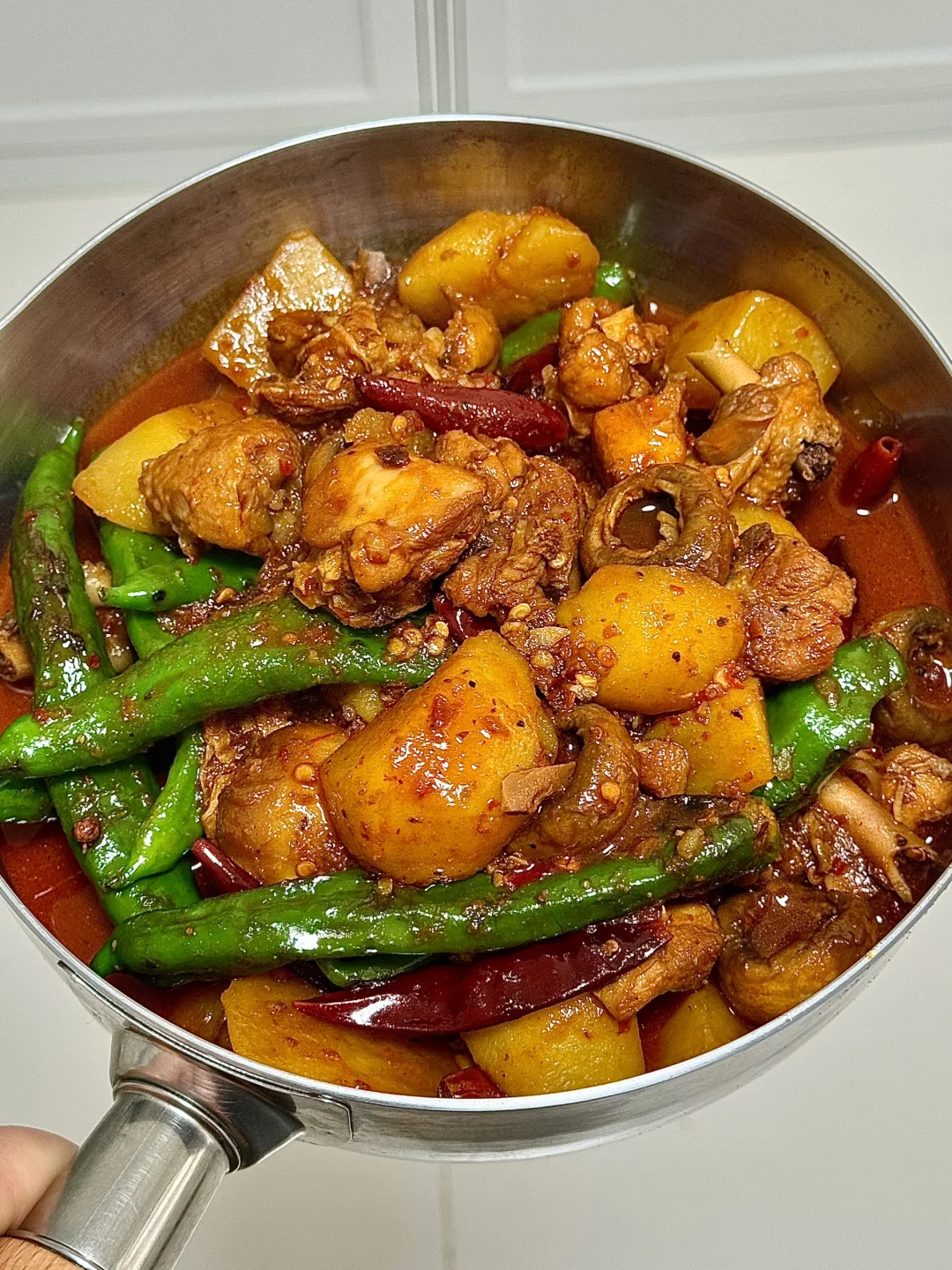 刚出锅的口蘑土豆烧鸡香气直钻鼻腔,鸡肉炖得酥烂入味,轻轻一抿就脱骨,土豆吸饱了浓郁的肉汁,炖到粉糯绵软,用筷子一夹就沙沙地散开,口蘑的汤汁在嘴里爆开,咸香中带着一丝清甜,配着米饭能连炫两大碗! 📜食材:鸡腿肉、口蘑、土豆、青椒 🍳做法: 1⃣️鸡腿肉冷水下锅,放姜片,花椒,料酒焯水备用 2⃣️锅中放少许油,放入青椒炒至虎皮状,盛出备用 3⃣️锅中多放油,放入焯水后鸡腿肉,炒至焦黄 4⃣️放入花椒、姜蒜、干辣椒炒出香味 5⃣️放一块火锅底料和一勺豆瓣酱,翻炒均匀 6⃣️放少许老抽调味 7⃣️加入适量清水没过食材,大火煮开后转小火煮20分钟 8⃣️放入口蘑和土豆,大火煮开后转小火煮15分钟 9⃣️放入青椒,大火收汁即可。 口蘑土豆烧鸡 土豆烧鸡 烧鸡 香菇鸡肉 美食教程 家常菜 下饭菜 今天晚餐长这样 的下饭菜 我的宅家美食日记