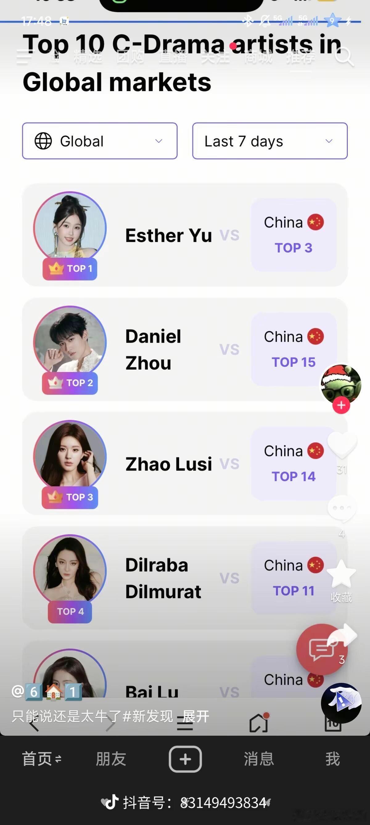 虞书欣《双轨》零宣发空降但还是凭实力突围了,站内热度峰值破8600,弹幕互动量破亿,全网有效播放量超5亿,主话题播放量达26.6亿次。虞书欣塑造的姜暮角色热度狂飙至13.18亿,一度登顶角色总热度榜,扛剧能力更毋庸置疑,带领剧集横扫猫眼等多平台热播榜TOP1。海外表现也更能体现她的影响力,剧集登顶23国/地区热播榜,北美Viki评分9.8,泰国、韩国等20余国收视夺冠。剧播期间虞书欣INS涨粉超50万,获外网高频好评,表现很亮眼!