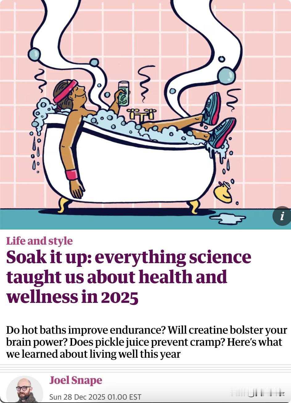 外媒:2025年科学教给我们的健康与养生知识 吸收精华:2025年科学研究揭示了诸多健康养生新发现。例如,胶原蛋白可增强肌肉肌腱的刚性,从而提升爆发力;热水浴可能有助于提高耐力,其效果类似高原训练;运动后冷水浴可能对恢复不利。此外,富含硝酸盐的甜菜汁能降低老年人血压,改善口腔微生物群落。 运动还能缓解网瘾,尤其是需要快速决策的运动。运动后喝酸黄瓜汁可缓解肌肉痉挛。补充肌酸可能对大脑有益,甚至能弥补睡眠不足的影响。性生活能提升心情长达48小时。多吃水果可保护肺部免受污染。久坐对大脑不利,即使日常运动量充足。 赛前过度使用手机会降低运动表现。脱水会增加压力反应。早晨喝咖啡对心脏健康有益,但下午饮用则无此效果。