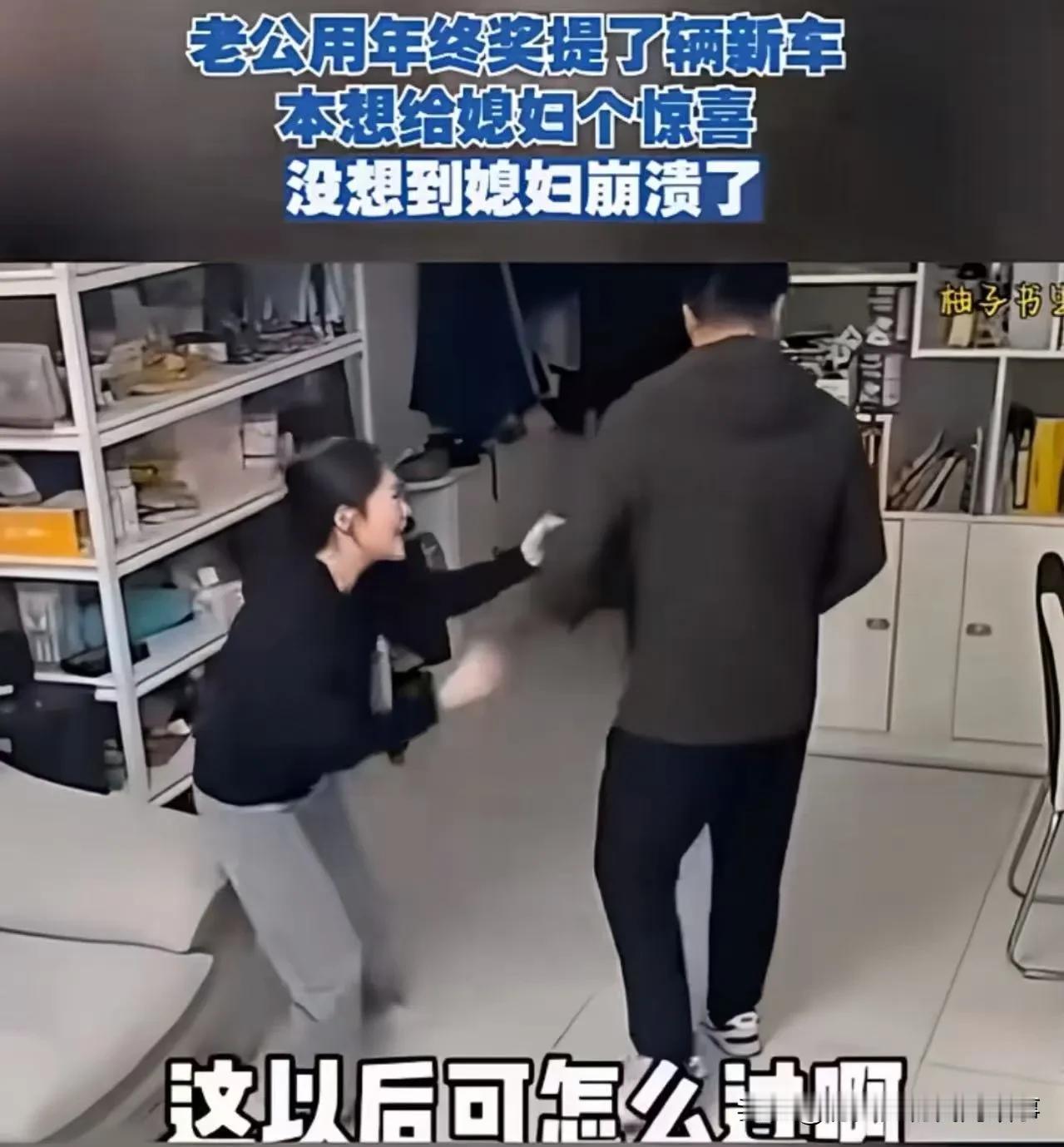 老公拿着年终奖,一咬牙提了辆新车,心想:这下给媳妇一个大惊喜! 结果媳妇看到车,当场崩溃:“你为什么不跟我商量啊?这以后可怎么过啊?你给我退了去!” 老公当场懵了:“我这不是为了这个家吗?” 视频发到网上,网友吵翻了: 有人说:“男人真不容易,想给家里好点的生活还被骂。” 也有人说:“没到财富自由,花大钱不商量,就是不负责任。” 这波,你站谁?年终奖 年终奖待遇 年终奖一个亿 素材来源于网络,侵权删除。