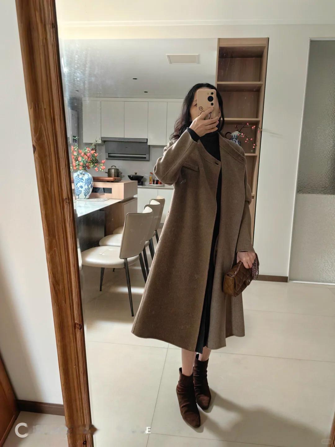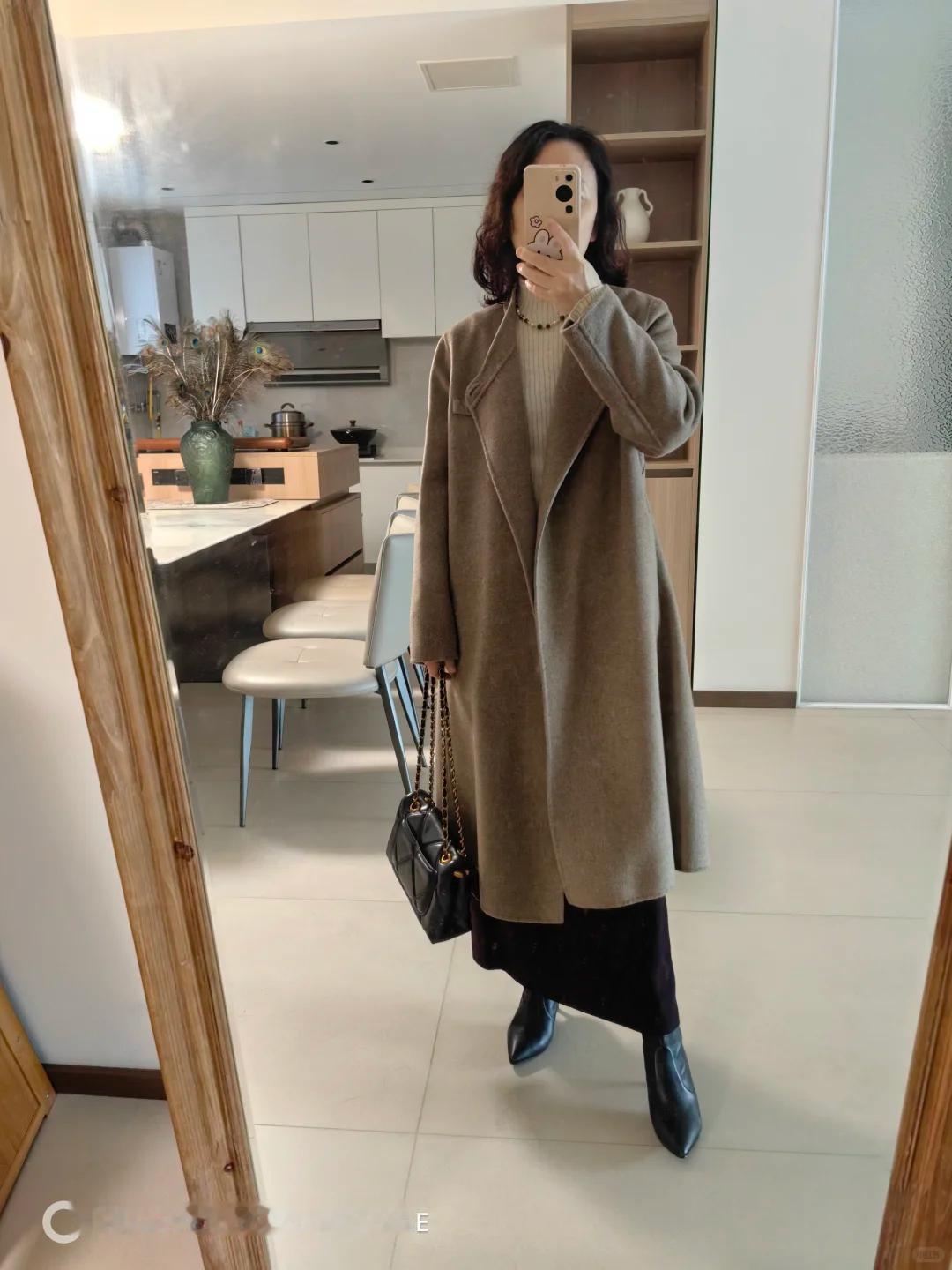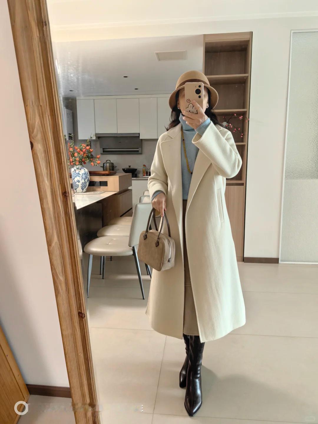 冬季大衣穿搭范本,优雅又高级的氛围感穿搭~ 成熟女性冬季想靠大衣穿出优雅高级氛围感,有不少实用技巧。 选大衣时,经典驼色、黑色、藏青等中性色大气稳重,颜色选对,穿搭就成功了一半,其次是版型,比如H型剪裁利落显瘦,X型凸显腰线,或者选择搭配腰带。 内搭选同色系或低饱和度色,如米白针织配驼色大衣。配饰上,丝巾、珍珠项链、质感皮包点睛,轻松提升格调。大衣搭配大衣成熟女性穿搭 【山羊绒+天丝】②快衣布秋冬气质韩版显瘦小个子双面羊绒大衣2501