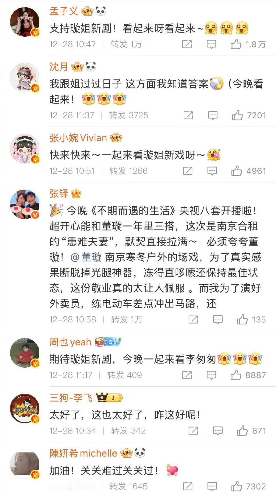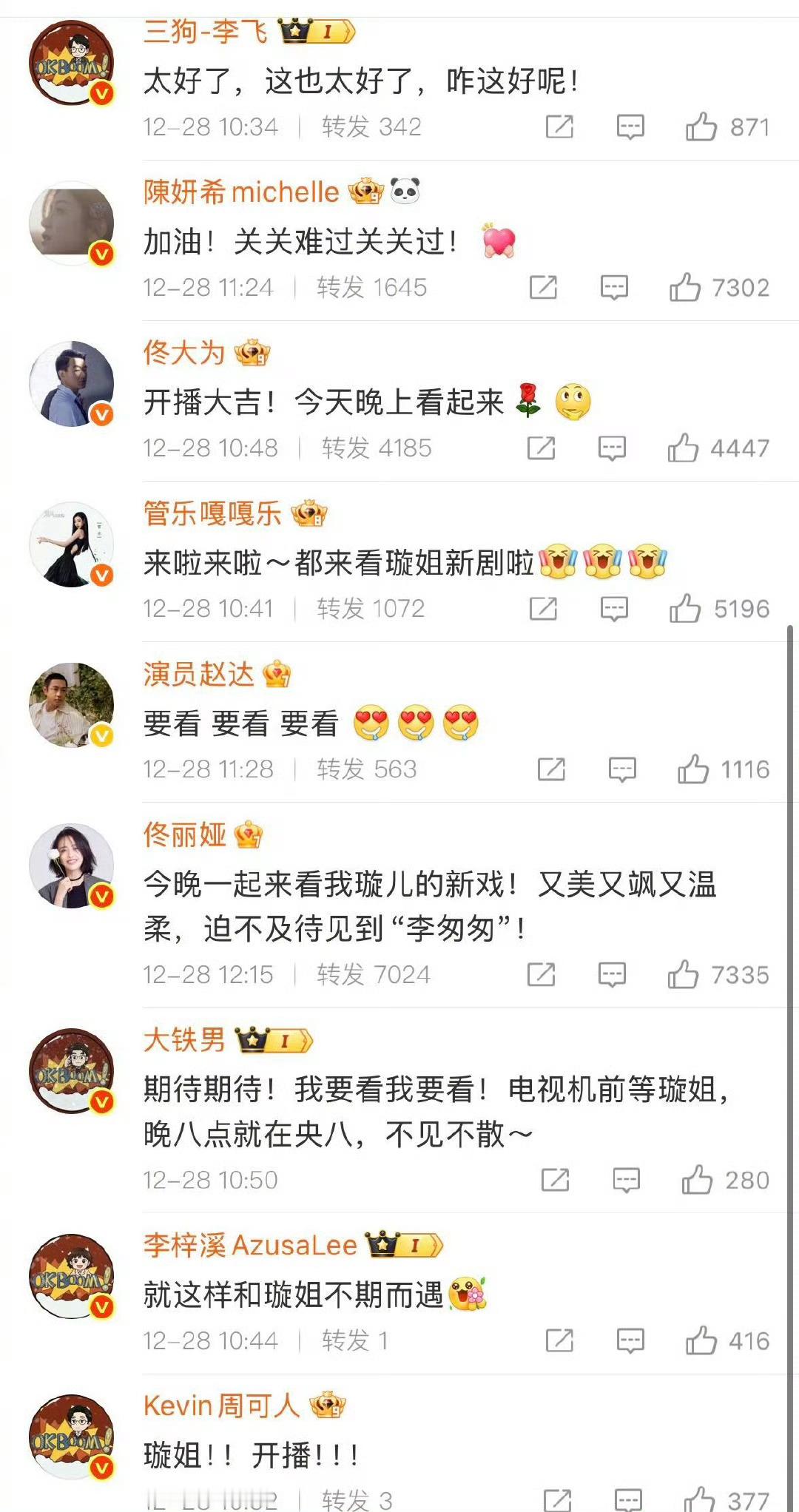 半个娱乐圈都来董璇评论区团建了哇塞!董璇新剧《不期而遇的生活》开播,评论区堪称半个娱乐圈大团建🎊 佟丽娅等好姐妹,张维伊等纷纷现身。不得不说,璇姐人缘杠杠的👏