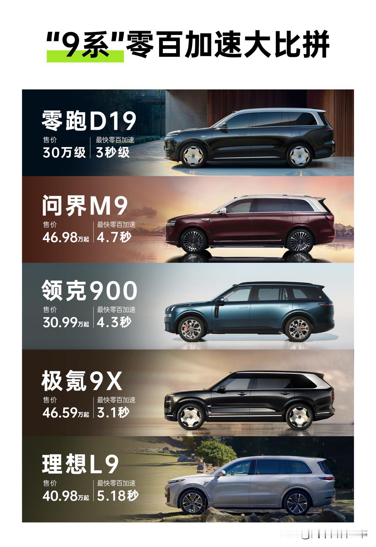新能源“最强9系”阵营,零跑D19有资格占得一席吗? 问界L9、理想L9、腾势N9、小鹏X9......如今,零跑也携手D19加入“9系”战场。当越来越多的“9系”问世,很多朋友也好奇,谁才是“最强9系”?或许,零跑D19就是那个有力的竞争者。 零跑D19将提供纯电、增程双动力,纯电版直击理想i8,增程版将与问界M9硬碰硬。零跑D19似乎做足了准备,其首发搭载双8797芯片,具备1280TOPS算力,支持端侧AI大模型与五屏三维交互,不仅算力超同级5倍,更满足未来5年升级冗余。 续航方面,零跑D19惊喜也不少。纯电版首搭宁德时代115kWh“超混电芯”,CLTC续航突破720km,足以对标理想i8;并且,D19纯电已有千伏架构赋能,充电一刻,补能超350km。增程版则行业首创,在增程车型上应用CTC电池底盘一体化技术,800V平台、80.3kWh超大电池也同步跟进,让D19增程具备500km纯电续航,30%-80%SOC仅需16分钟。 “9系”SUV的强项——空间,零跑D19也没落下。该车长超5米2、轴距超3米1,内部采用纯平地板,得房率做到了88%,并支持6/7座可选,不仅适配多场景家庭使用,空间利用率与第三排乘坐体验也颇具竞争力。 在智能化、续航与空间多维竞争中,零跑D19以全域自研的技术底气,表明自己不仅是“9系”阵营新选手,更是不容小觑的实力派。零跑D19 问界M9 理想i8