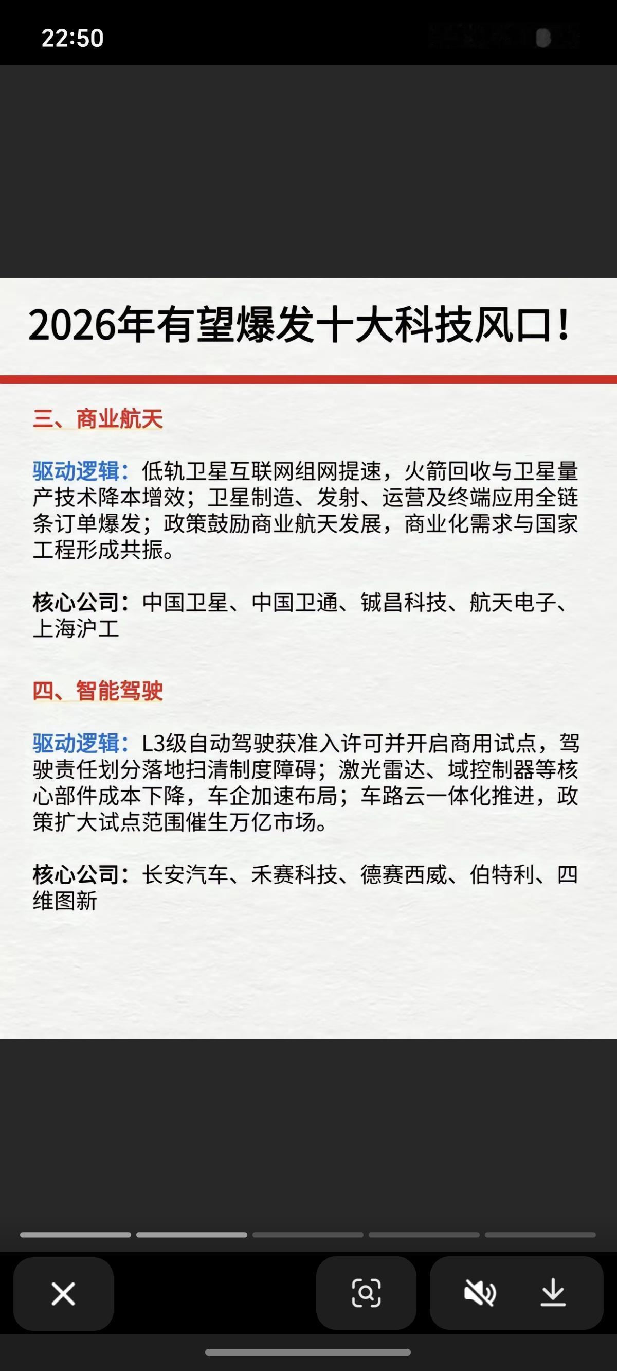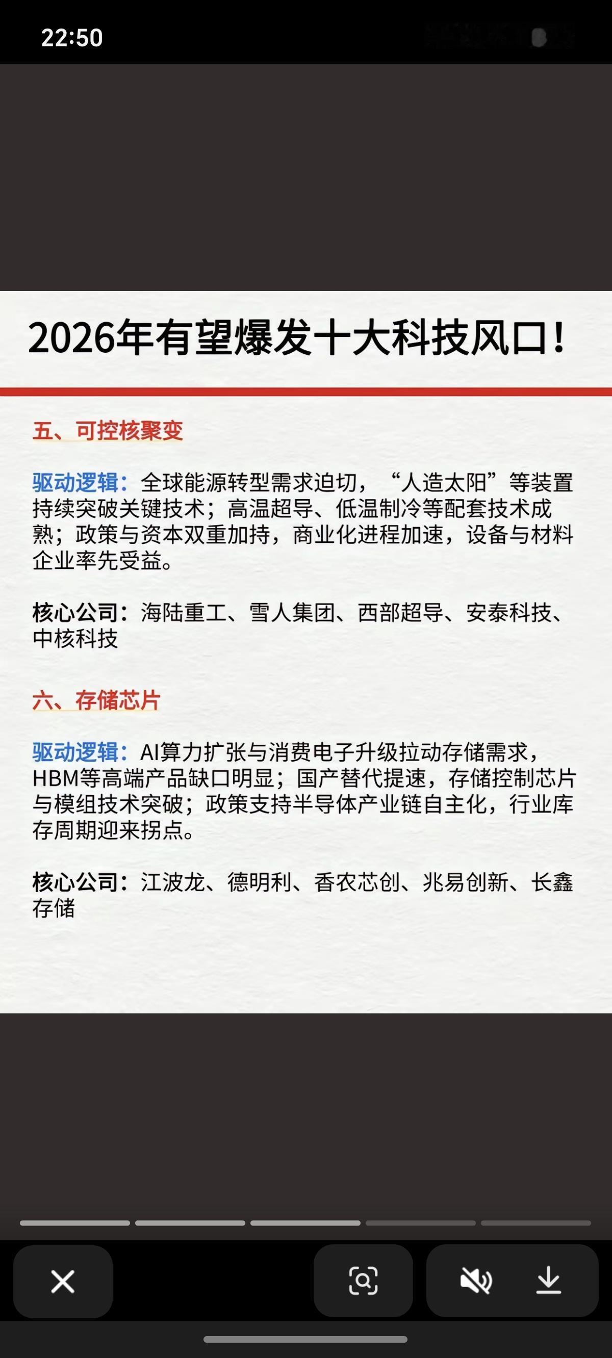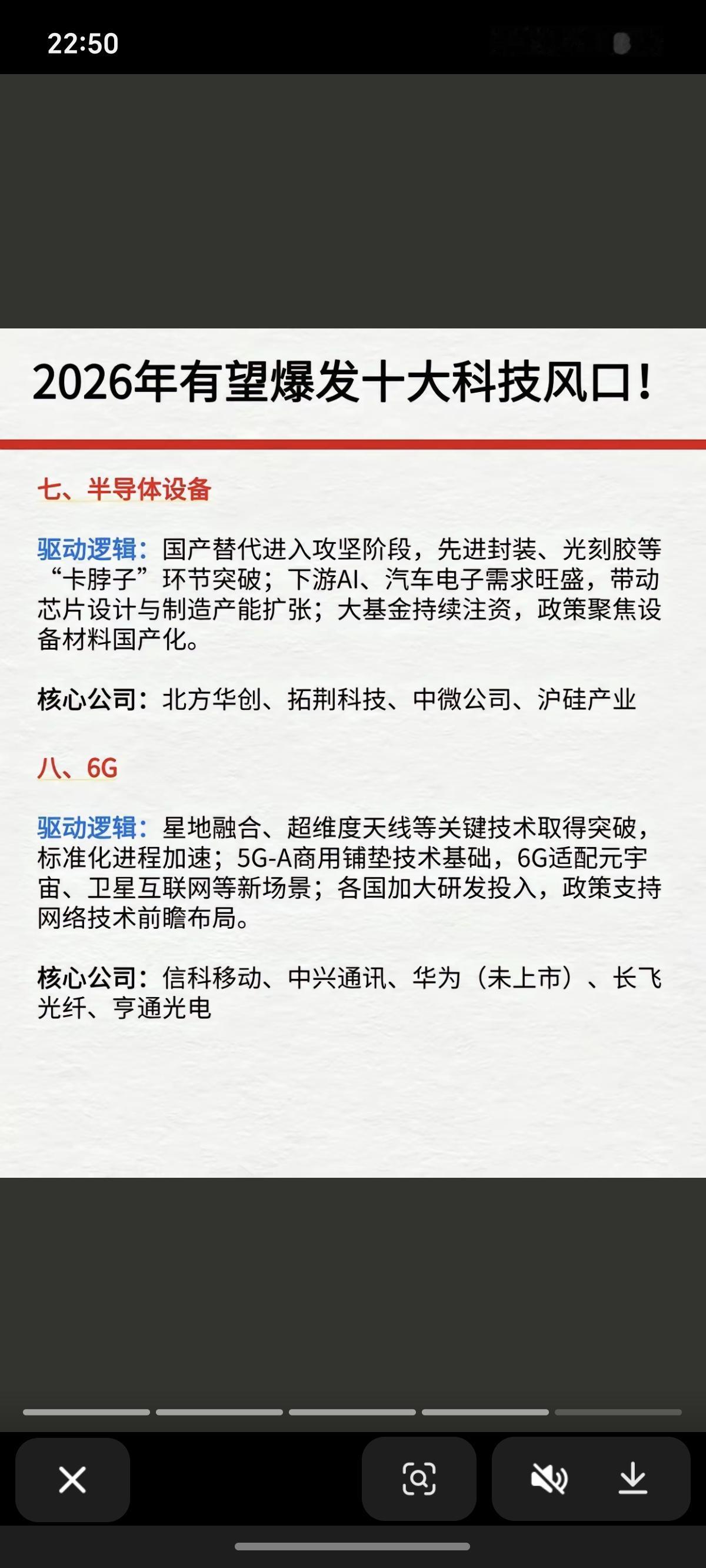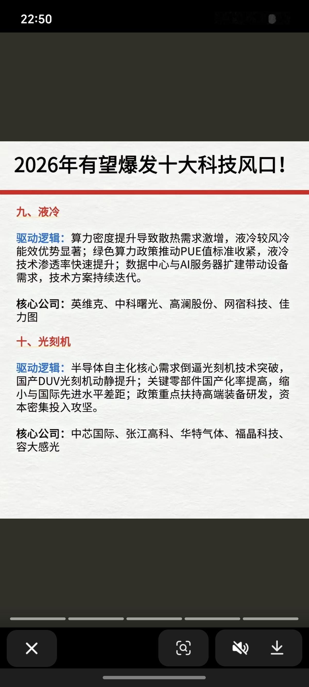 2026年有望爆发的十大科技风口! 1.人形机器人 2.算力+ai 3.商业航天 4.智能驾驶 5.可控核聚变 6.存储芯片 7.半导体设备 8.6G 9.液冷 10.光刻机 相关板块核心龙头股:收藏备用