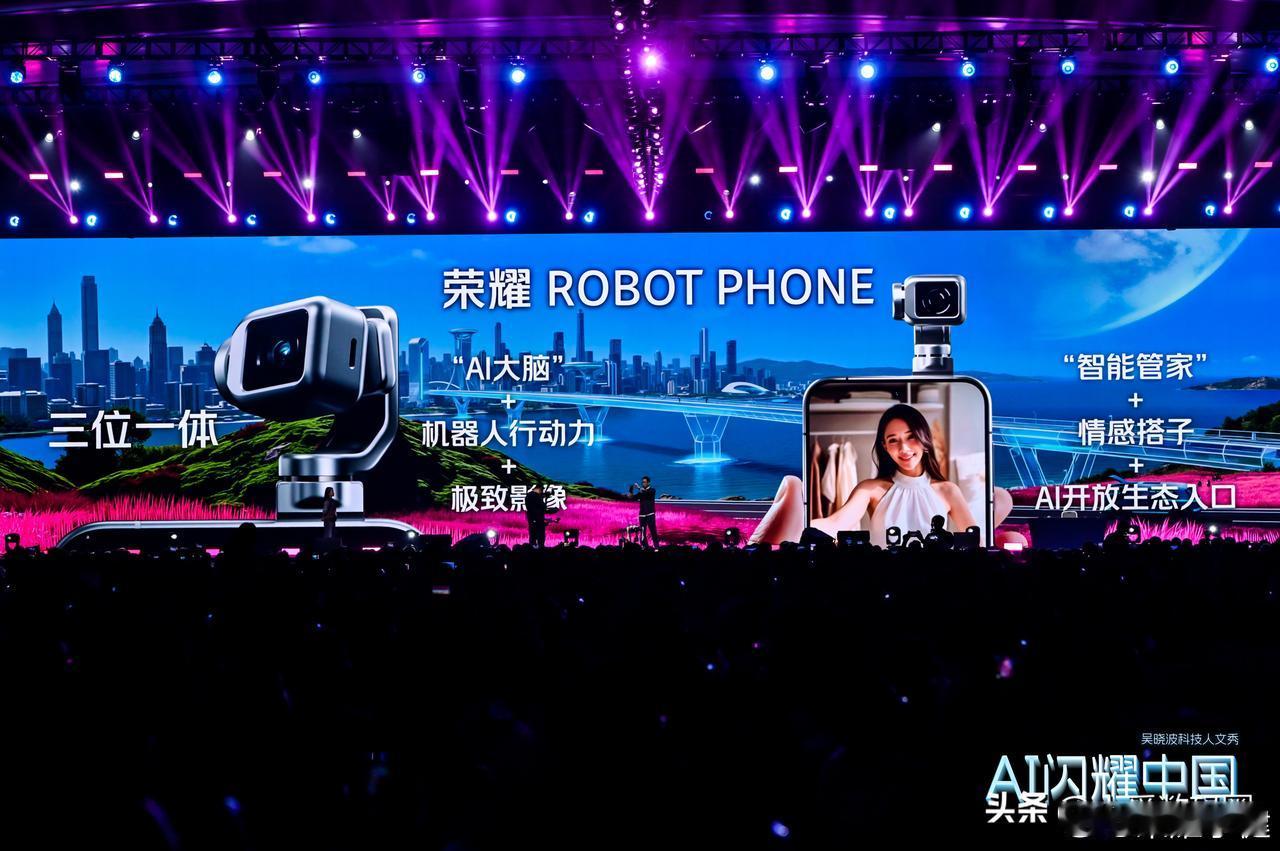 哎呀,全球第一款机器人手机亮相就在今晚的厦门,错过了,在厦门举办的“AI闪耀中国”吴晓波科技人文秀上,机器人载着荣耀ROBOT PHONE上台了,这台手机被吴晓波称为“三位一体”的创新:AI思考、机器人行动、极致影像,恰好对应了终端智能进化的三个维度:感知、行动与表达~ 会上的一句话我很认同,手机竞争已经是一片红海,唯有全新形态才能竞争!荣耀ROBOT PHONE是荣耀思考未来手机的结晶,它不止有思想,还具备行动能力,完全是具有手机形态的机器人,这很有可能就是代表未来的全新形态!很期待它能做到什么程度,2026年3月见了荣耀ROBOT PHONE