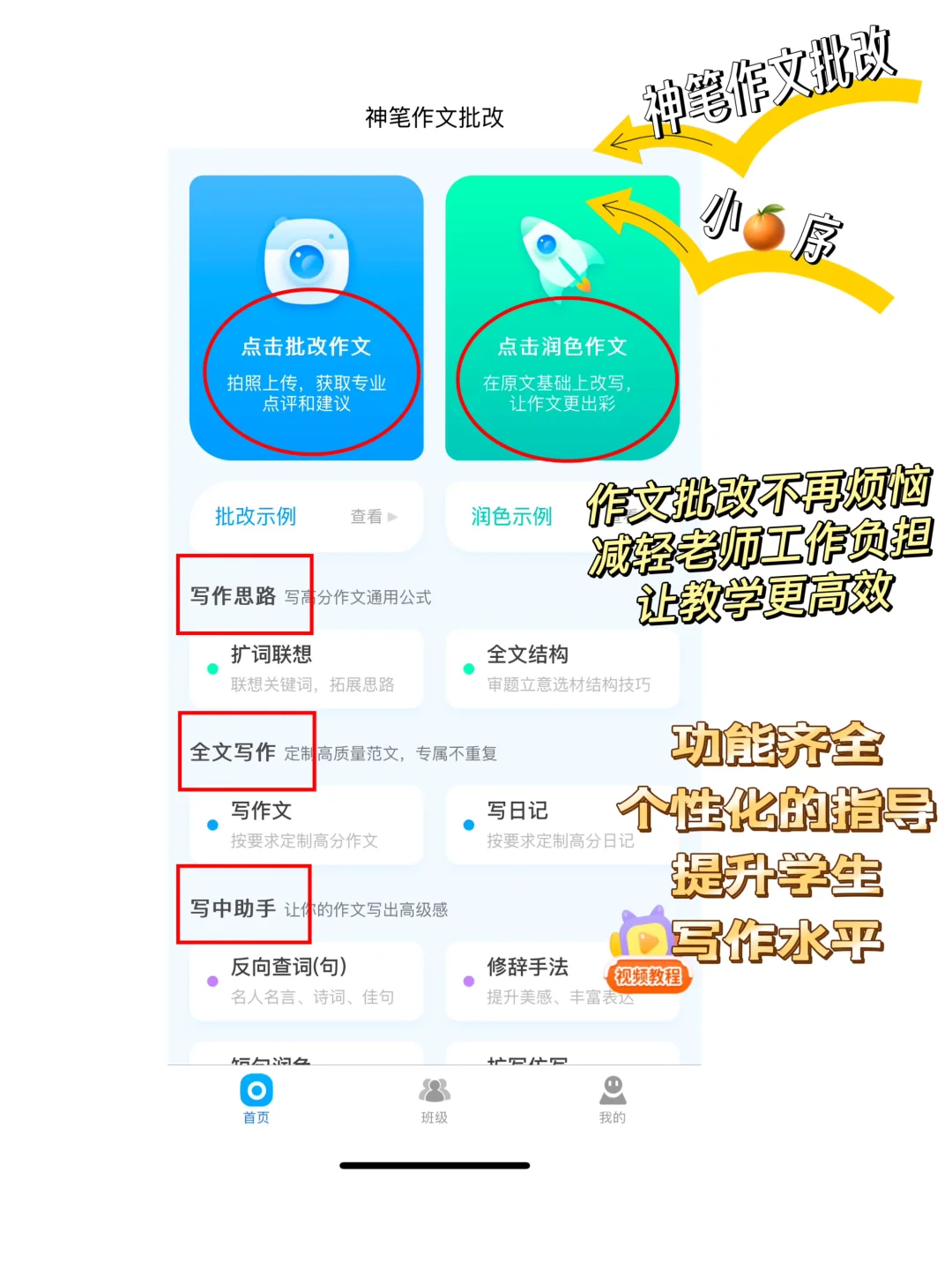 一到每个单元习作这一课,应该很多语文老师头大吧,不仅是学生找不到思路来写的问题,更重要的是老师批改作文太痛苦了,两个班的作文实在是太多了,评语和旁批想到头秃。要是没有一些辅助工具真的改不完啊,好用的工具可以让我们事半功倍,比如这款小程序——【神笔作文批改】,让学生写作和老师批改更轻松的神器,我们的救星来了!!!