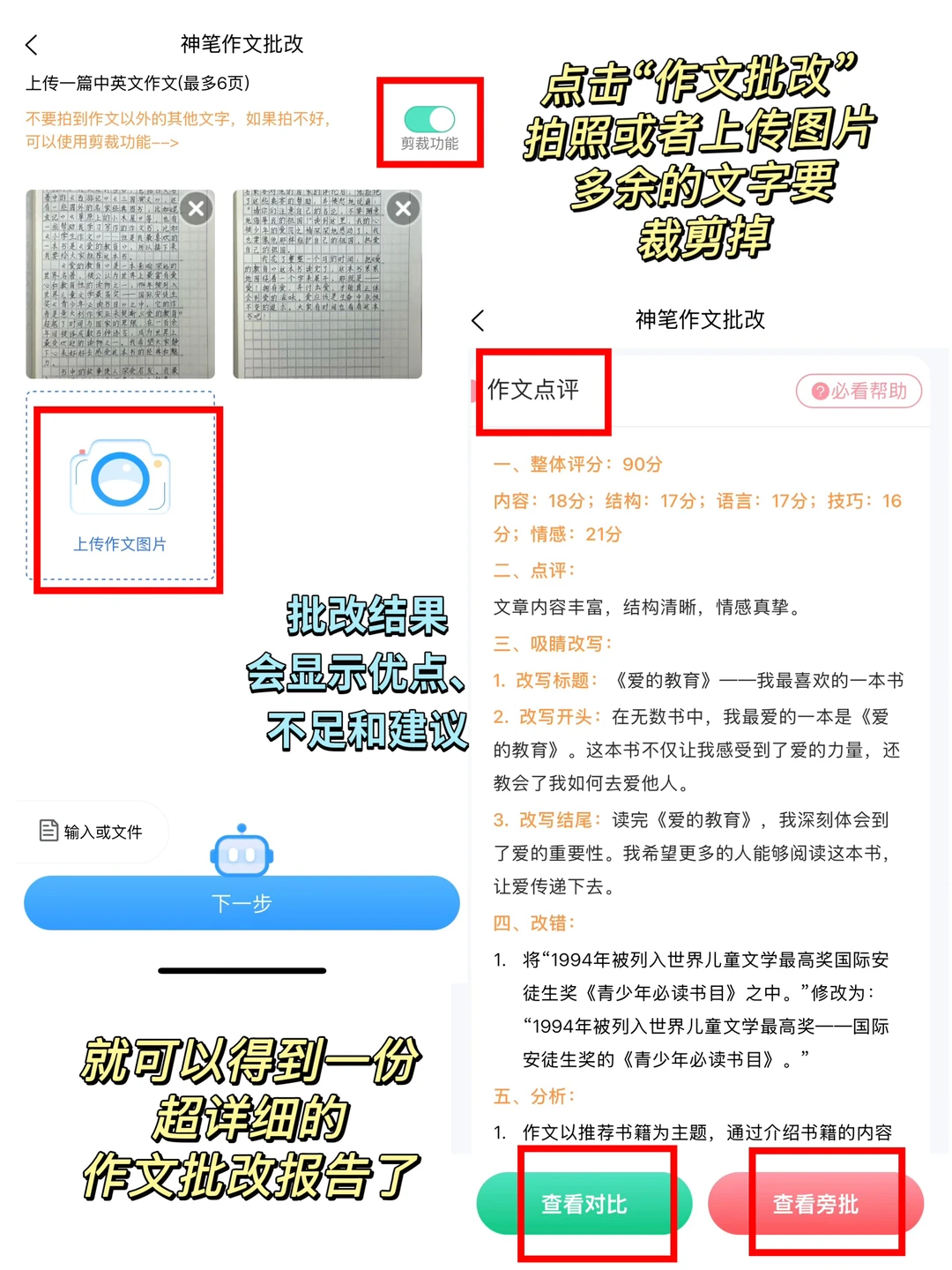 ✨对于教师而言,神笔作文批改是一款不可多得的辅助工具。只需要简单拍照上传,就可以享受超详细的作文批改服务。减轻工作负担,教学也变得高效了。