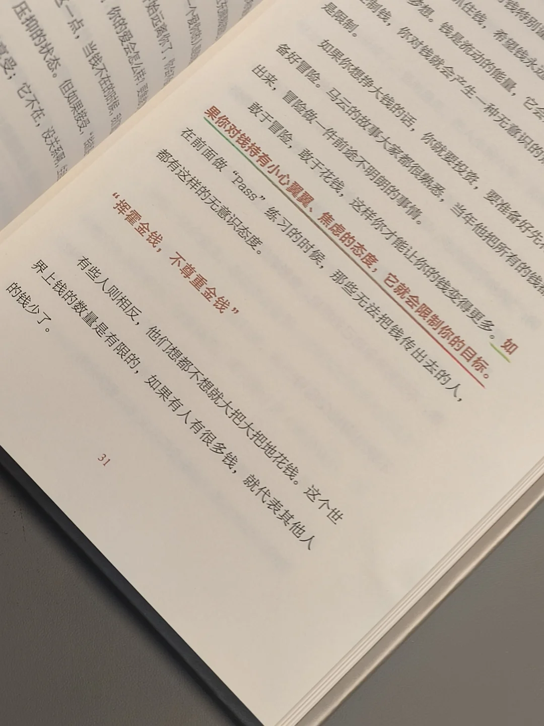 ✅书中帮我们分析了这些无意思信念的来源,例如我们受父母的影响比较大,帮我们提出如何去改变,达到我们改善与金钱的关系。所以一定要趁早阅读这本书。书里还有互动环节,手把手教我们如何去改变,如何让能量流动起来。