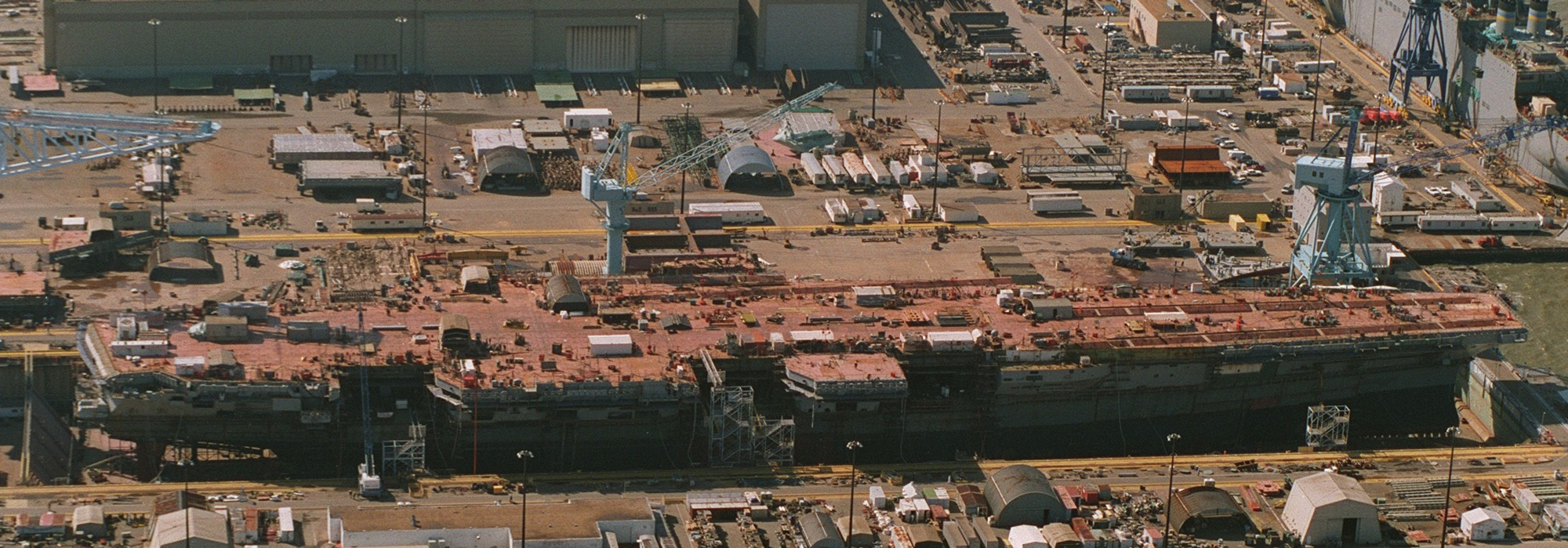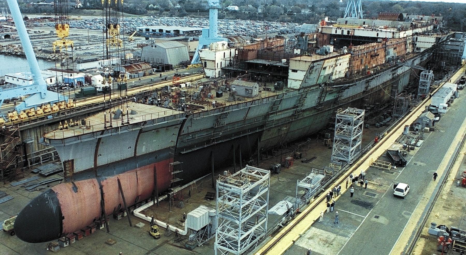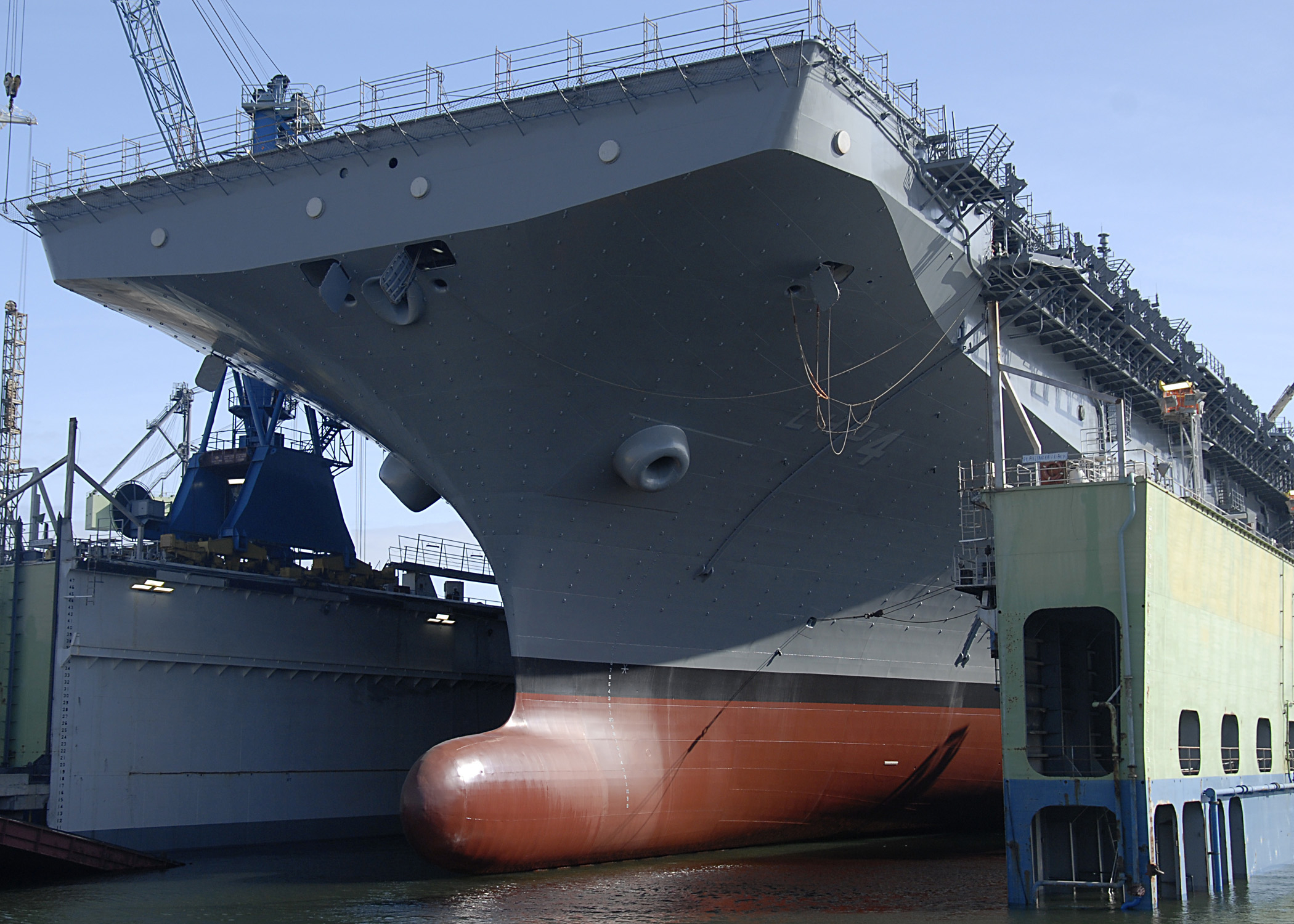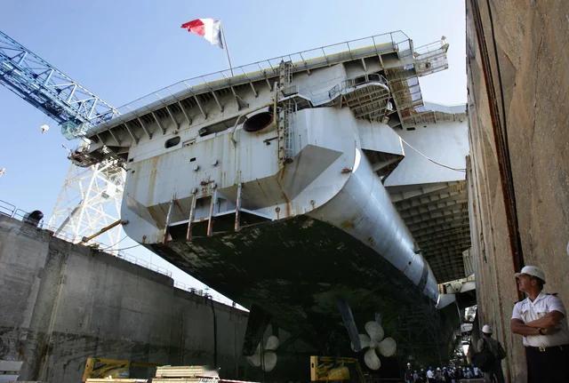 【有关载机舰船体型线和减阻的一些历史】1. 第一艘装有大型球鼻艏的美系航母是里根号,在此之前的美系航母都没装球鼻艏。不装球鼻艏会带来一个“好处”——航母舰艏可以紧靠船坞外侧,腾出船坞后部空间用于堆料等生产整备工作(可见图3)2. 相比之下,与华盛顿号同期诞生的黄蜂级LHD,比尼米兹级更早应用球鼻艏。而且黄蜂级似乎是西方海军强国中第一个配备球鼻艏的大甲板载机舰(其实意大利的加里波的号也有球鼻艏,但她个头实在是太小了)3. 与黄蜂级同属4万吨级的戴高乐号,也和当时的尼米兹级一样没有配备球鼻艏,是目前为止唯一一种采用双推进轴的弹射型核动力航母,或许也是历史上唯一一艘配备了亚浪板的弹射型核动力航母(没办法,谁叫她动力贫弱呢)4. 相比于戴高乐号的别扭和凑合,PANG在别扭和凑合的基础上还增添了一些极端:PANG是历史上第一种采用穿浪艏的大型航母,法国佬为了尽可能地延长水线长宽比,在PANG的艉部加了一块延长结构,使得艉型变成了类似现代游轮的类巡洋舰艉,在造型上与传统常见的巡洋舰艉有着很大的区别5. 作为方艉的发明国、各种现代航母装备的发明国、全燃/全柴/全电力载机舰的首创者和先行者,带英在海军载机舰的减阻设计方面却表现得很保守,诞生于21世纪的QE和POW是第一批配备球鼻艏的英系航母,相比隔海相望的邻居,QE和POW的船型设计可谓是非常的中规中矩,只不过她俩应该是长宽比数值最低的中大型航母6. 库子/瓦良格的舰壳声纳就装在球鼻艏内,只不过在瓦良格变成001的过程中,国内相关单位大概率是放弃了安装舰壳声纳的想法,将其变成了一种单纯的舰体结构件,从002开始,球鼻艏成为了一种专门的减阻船体构件,到003这一代,在论证材料中待了快有十几年的新式大型球鼻艏终于获得了应用