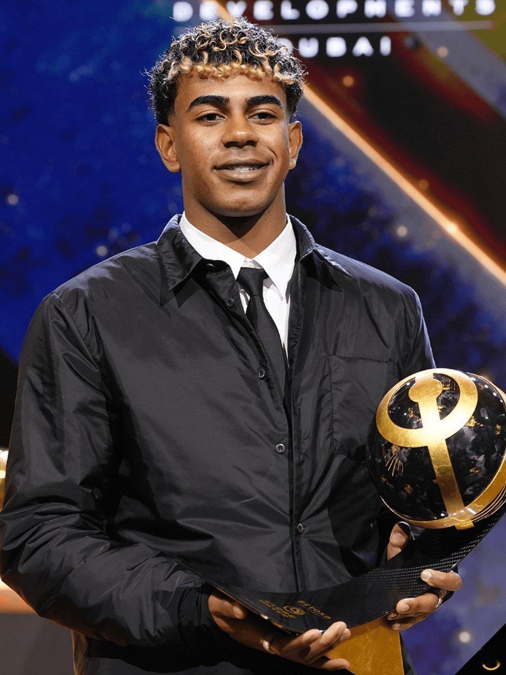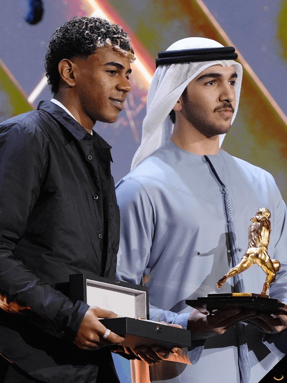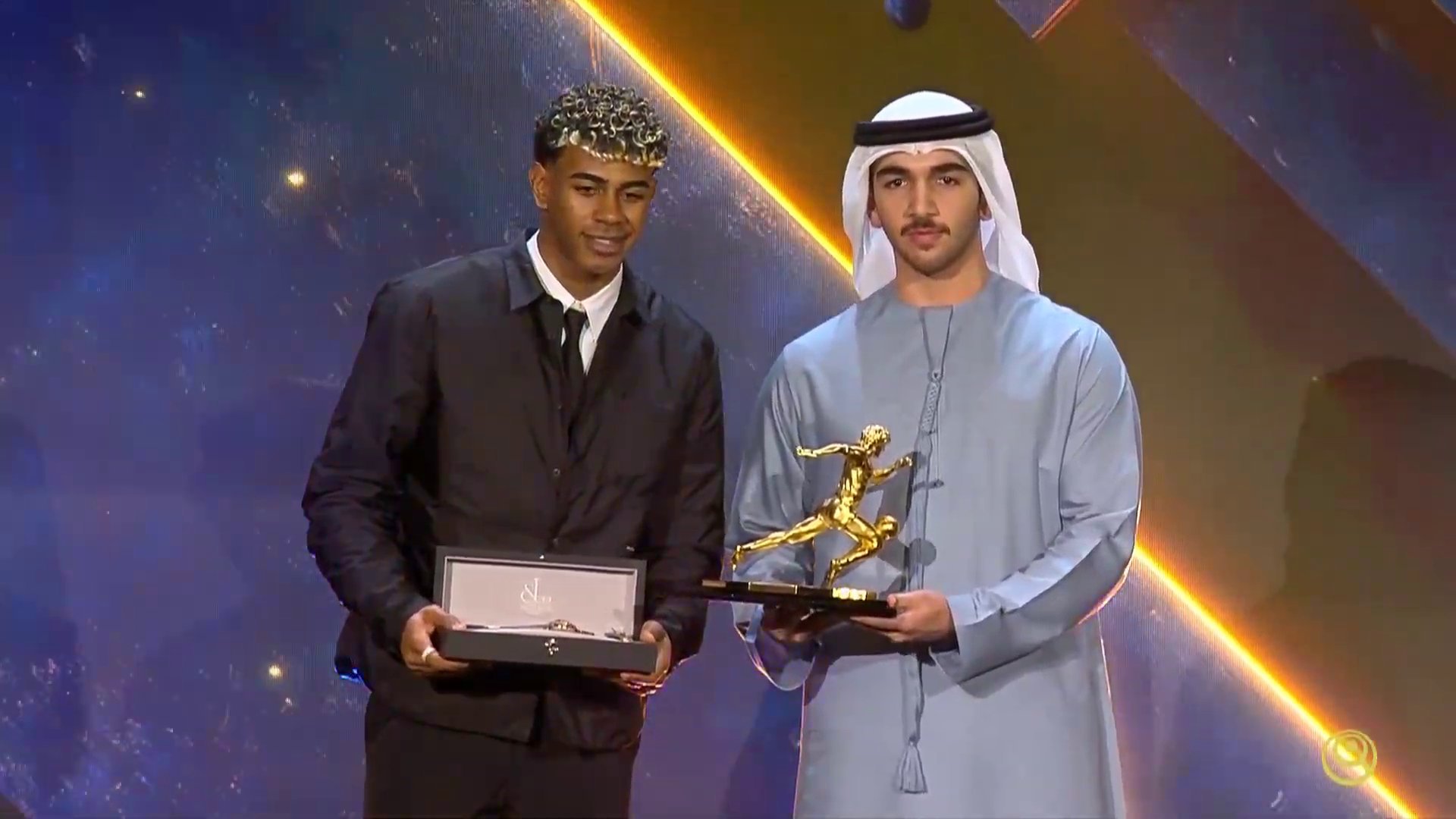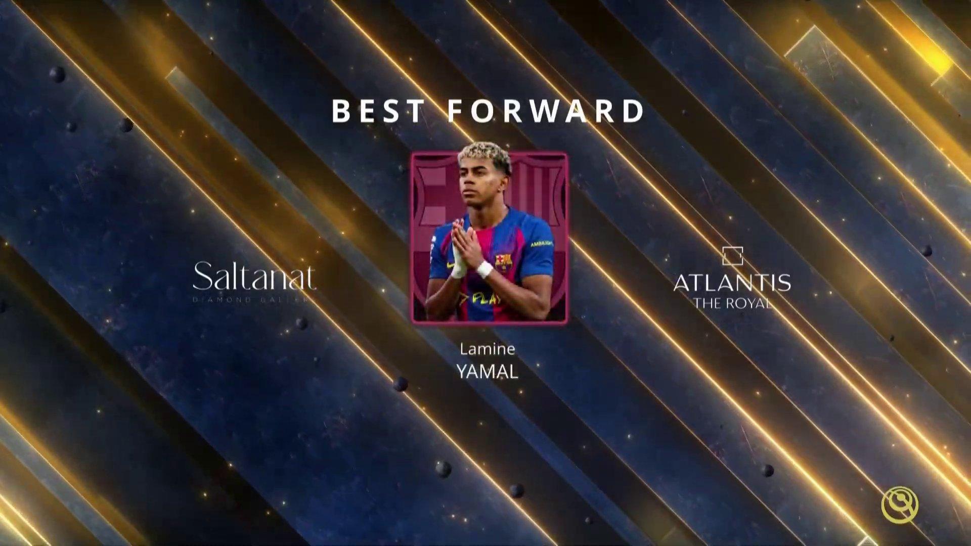 亚马尔荣获环球奖颁发的3个奖项:年度最佳前锋奖,马拉多纳奖,西甲赛季最佳U23球员奖。并且获得一枚高级手表。⌚⌚⌚⌚体育大赏巴萨至死不渝红蓝魂