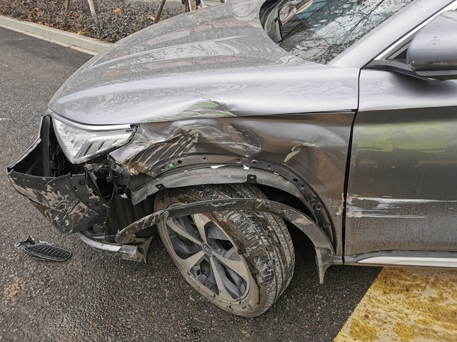 顺利拿下一血心肝疼 两个月开了一万公里,周末去超市购物出来,和大卡车同时右转,大