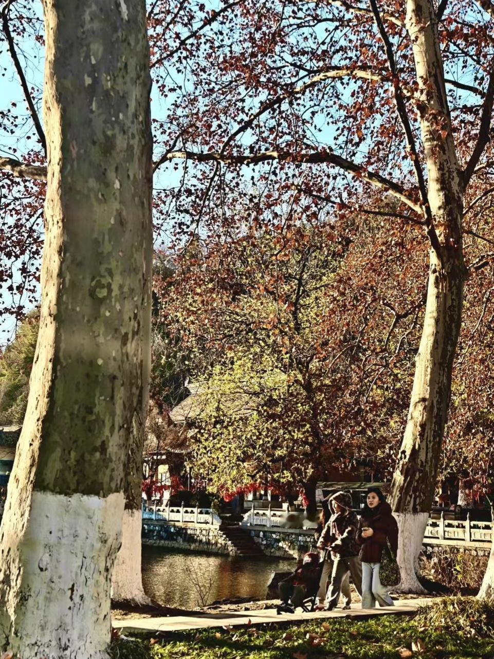 ✨老树枝桠筛着晴日的暖,湖水把古意晕成涟漪,步道上的步履,正踩着季节与岁月的温柔共振。 🌿秋阳给枝叶镀上琥珀色,湖水映着树与亭的剪影,行人的身影里,藏着整个秋天的静谧与尘世温情。