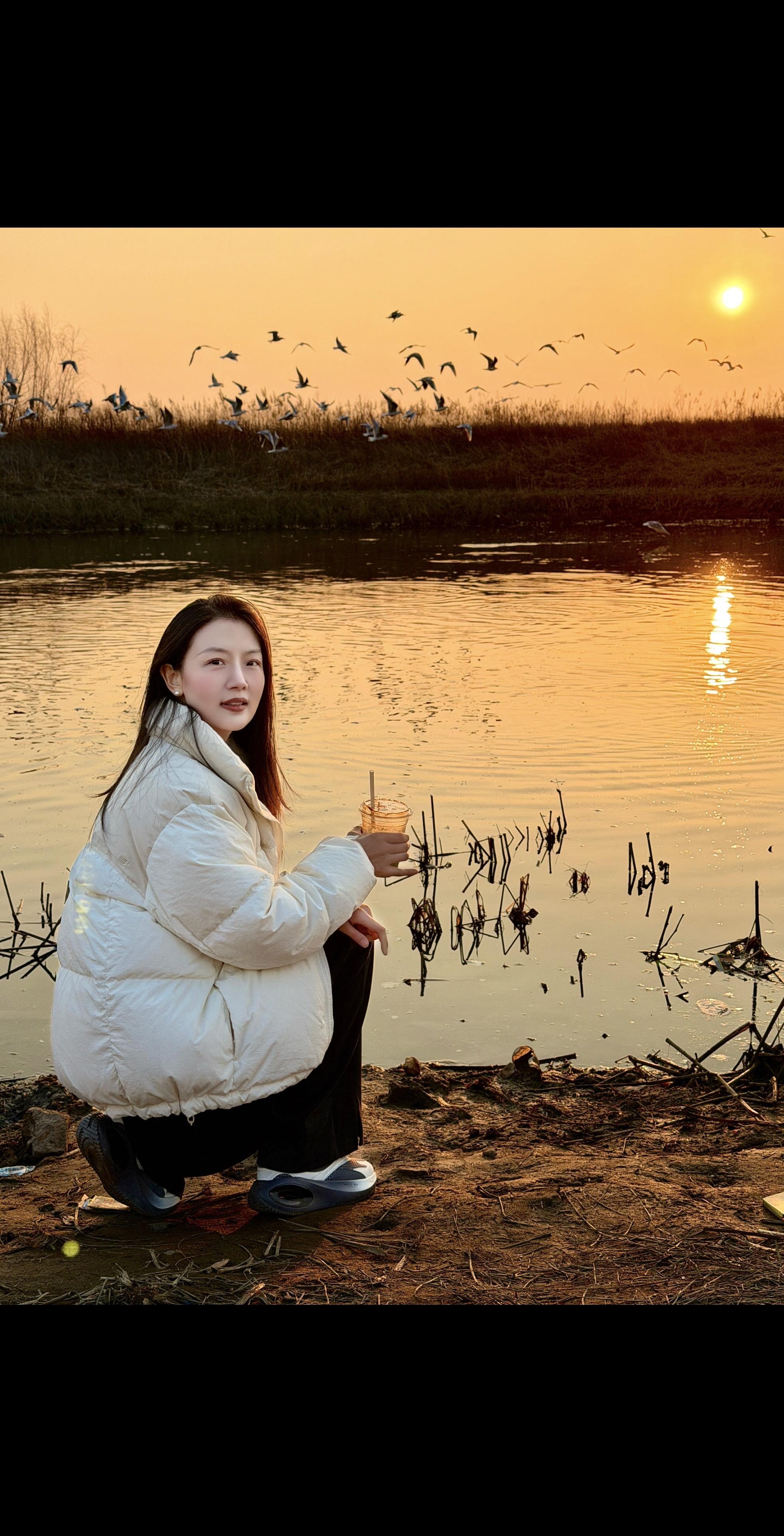 白龟湖红嘴鸥。 . 落日熔金,鸥鸟伴行,温柔漫了整个黄昏。
