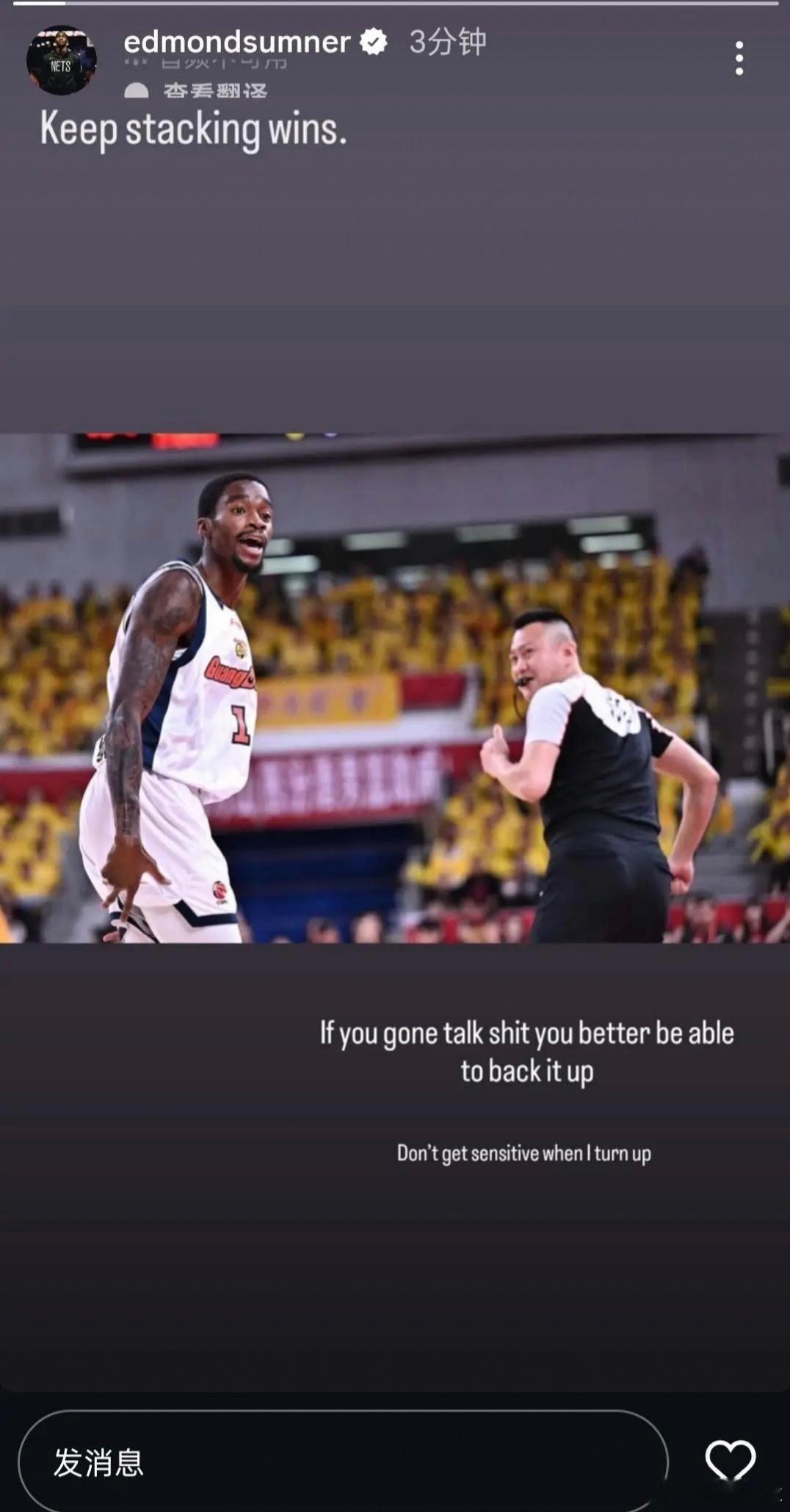 外援萨姆纳赢球后的回应:-如果你要喷垃圾话,你最好有真本事去兑现它!-我一发力,你可别急眼哦!今年广东队这几位外援比赛气质一个比一个硬啊 广东男篮七连胜