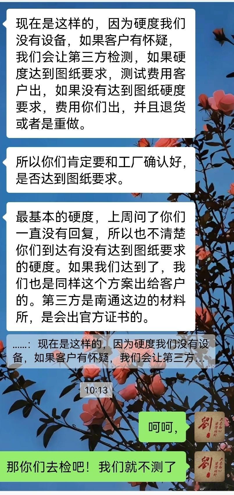 刚和客户吵了一架, 这破生意没法做了,爱买不买,老妇不敬着了。 订制了十支丝锥,本来就是试样,行就下单,不行拉倒,多大点事嘛! 说实话本身就是使用问题,还死不承认,天天威胁,要这样要那样,再去第三方检测硬度。话说要抱怨,要退货都可以,我又不跑,负责到底,就那1000多块钱的事,难道弄出个官司? 一打电话过来啰里八嗦半天不挂,谁不工作陪你聊这点破事?纯属吃饱撑的!