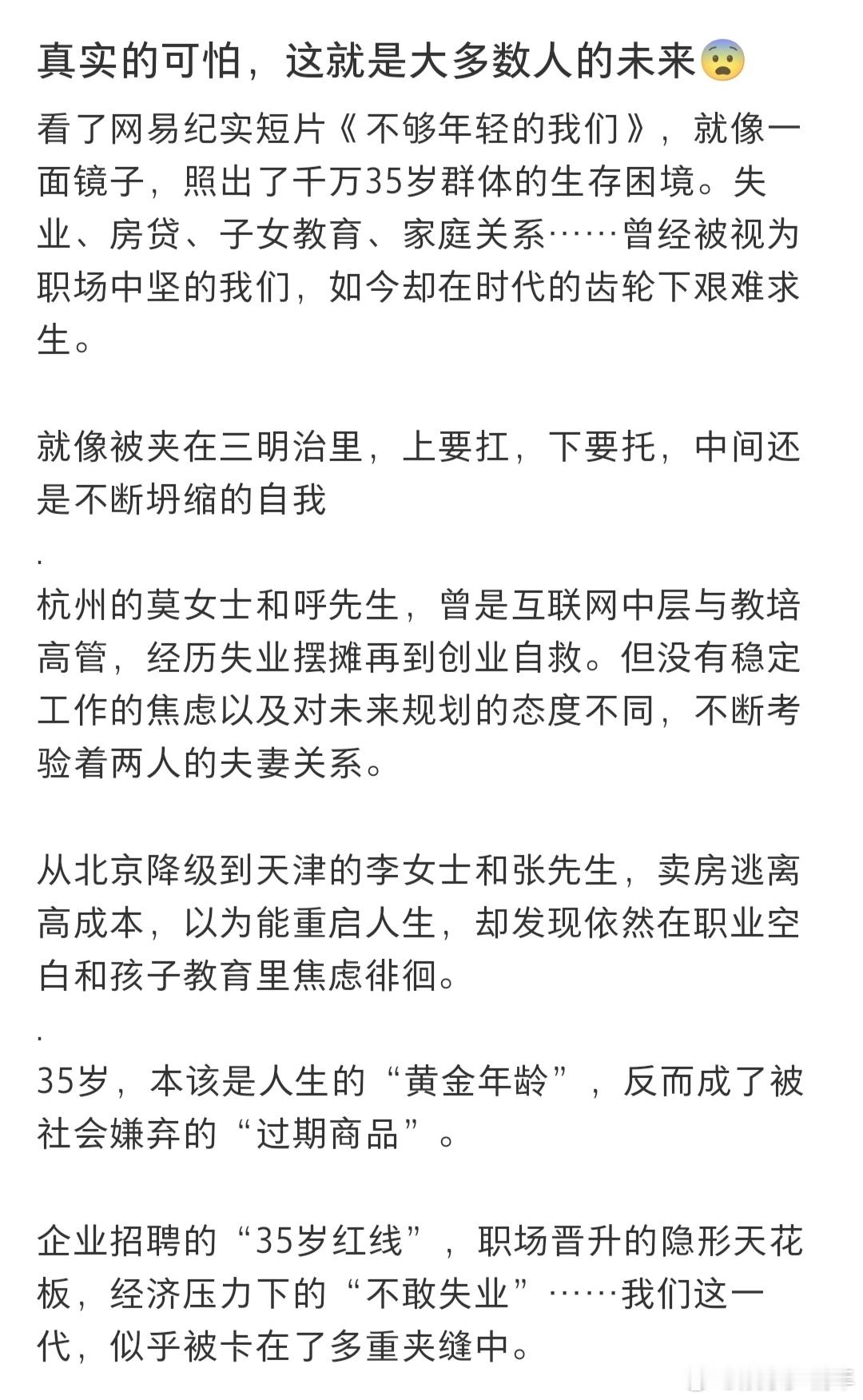 原来35岁那么刀人 现在本科毕业不也要跑外卖吗,只能说大环境就这样吧。上很好的大学也没过上幸福人生失业夫妻哪有不吵架的