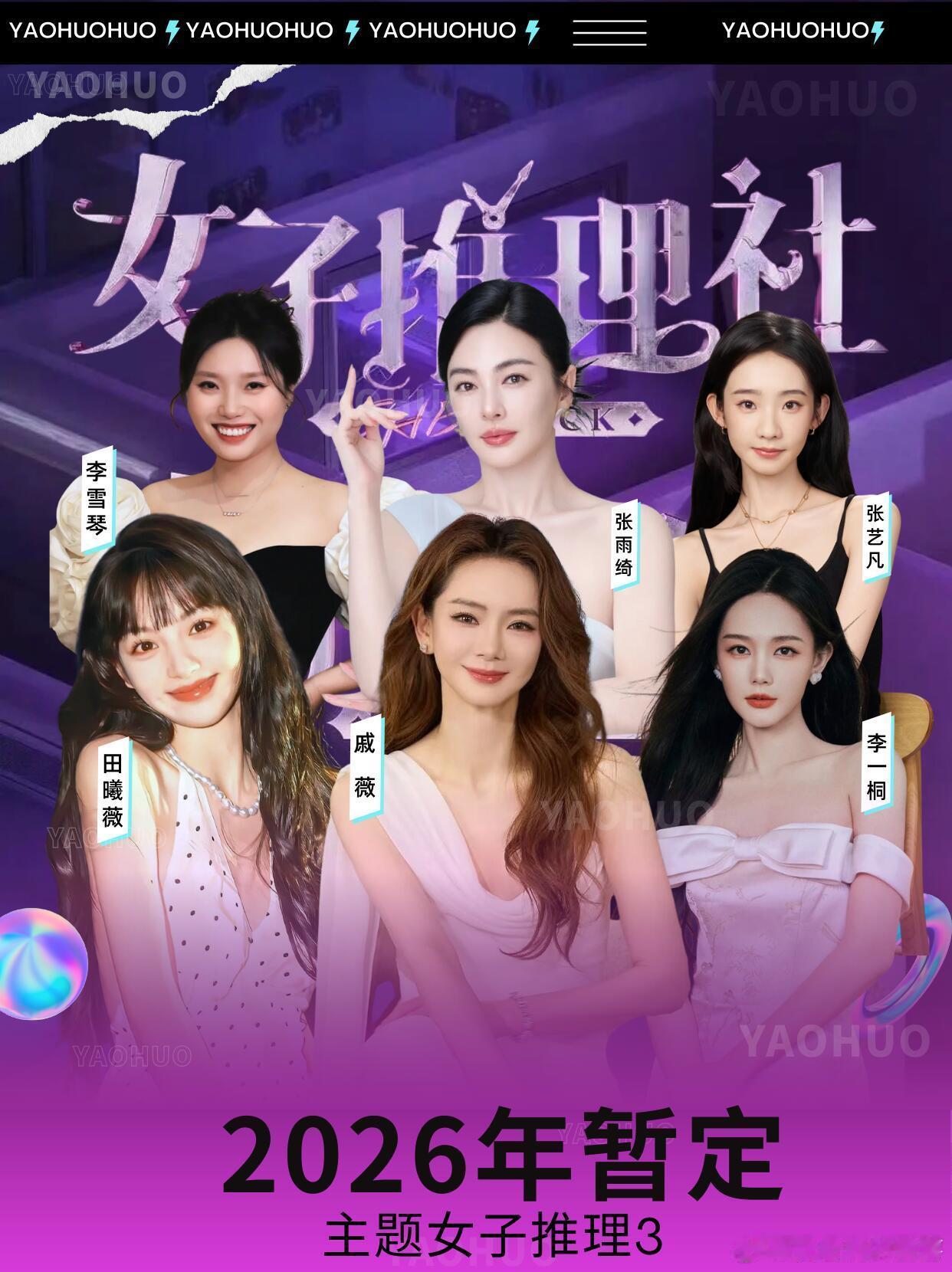 女推粉狂喜!《女子推理3》2026录制定档谁懂啊家人们!等了整整一年的快乐终于要来了‼️📅 核心信息:⏰时间:2026年(暂定,具体时间待官宣)📍地点:长沙(具体取景地待官宣)🌟活动:《女子推理吧3》录制✨嘉宾:戚薇、张雨绮、田曦薇、李一桐、李雪琴、张艺凡(原班人马)女子推理吧3|