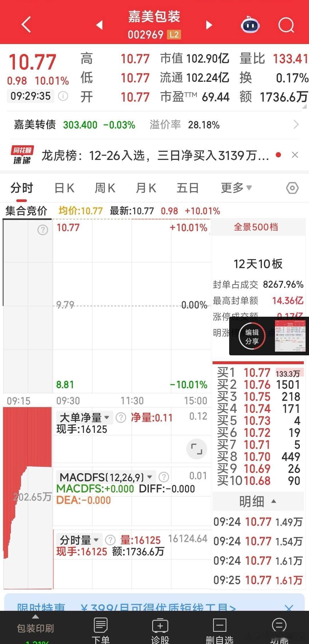 【上午战况】现手中5票广西广电,毅昌科技,胜利股份,通业科技。嘉美包装还没上车。