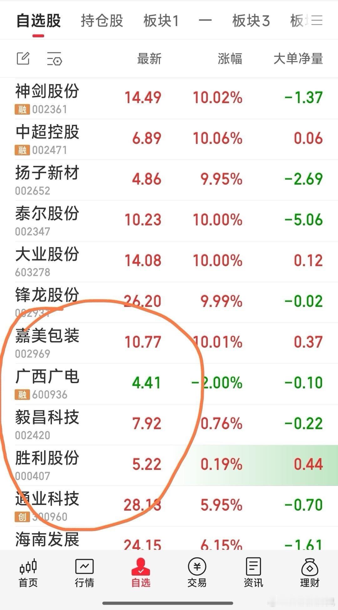 【今日操作】今天狙击了嘉美包装,通业科技。嘉美包装还没上车。今天减了安通控股,天通股份,创元科技。原在的广西广电,毅昌科技,胜利股份继续持有跟踪。強势票锋龙股份,大业股份,中超控股,神剑股份仅看表演,没搞。现手中5票广西广电,毅昌科技,胜利股份,通业科投。嘉美包装还没上车。