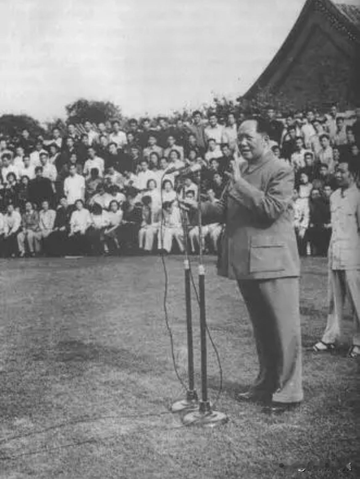 1957年5月25日,毛泽东主席在北京接见中国新民主主义青年团第三次全国代表大会全体代表时发表讲话的场景。他指出:“中国共产党是全中国人民的领导核心。没有这样一个核心,社会主义事业就不能胜利。”同时强调:“一切离开社会主义的言论行动是完全错误的。”