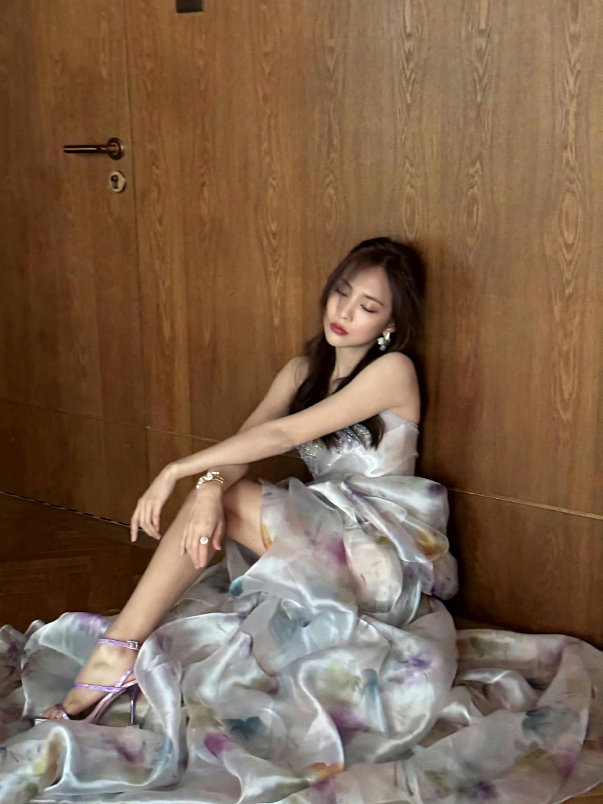 王菲菲,迷人礼裙妆造,清冷魅力满满。王菲菲