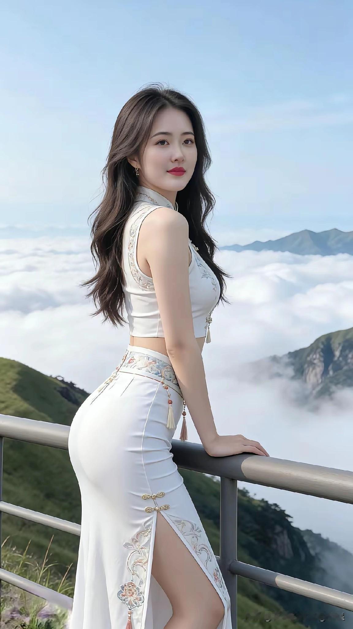 穿旗袍装登上山顶,实属不易[比心]就像登上最高舞台,成为闪耀的女主[击掌] 旗袍