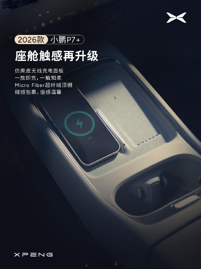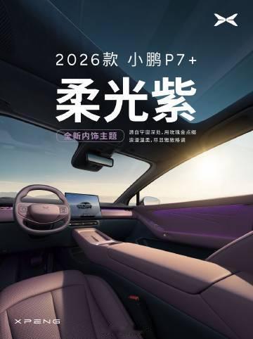 小鹏官方最新预热消息,又公布了2026款小鹏P7+部分配置升级配置有: 8.8 英寸“科技岛”仪表、新增 29 英寸全场景 HUD 抬头显示、空调出风口调整为隐藏式设计、车内配有 256 色“星瀑式”氛围灯、线充电面板采用仿麂皮材质等部件升级。还有一点,2026款小鹏P7+还提供六种配色,分别为“星镜蓝(新增配色)”、“星暮紫”、“星云白”、“星阙灰”、“新月银”、“暗夜黑”。内饰选配也新增“晨雾蓝”、“柔光紫”。据官方宣传海报是104项体验升级,量大管饱了。小鹏P7+小鹏汽车