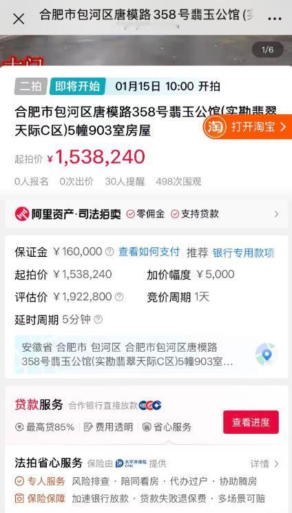 合肥包河区万科翡翠天际,一个扛不住的成为法拍房了。不过这个法拍的价格也不低,说明这个房子还保值,虽然当时买要两百二三十万,现在法拍还能154万起拍。