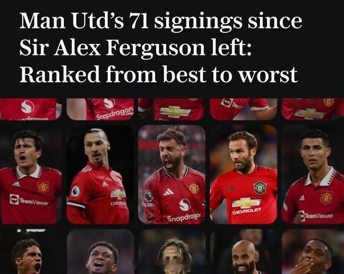 【红魔复兴坎坷路】英媒统计,自从2013年6月弗格森爵士退休之后,在过去的12年时间,曼联累计花了超过20亿英镑,引进了71名新球员,但是依然未能重返“英超之巅”,红魔的复兴之路仍旧在坎坷前行。
