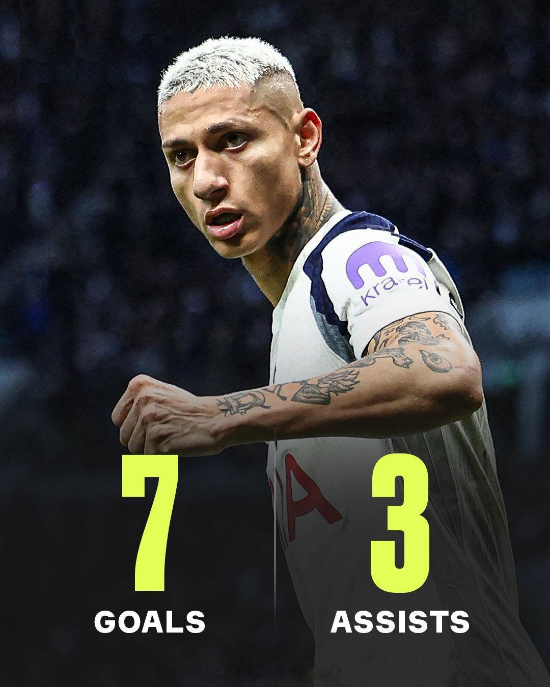 【进球看心情】平心而论,理查利森本赛季的状态是不错,18场联赛,一共出场1075