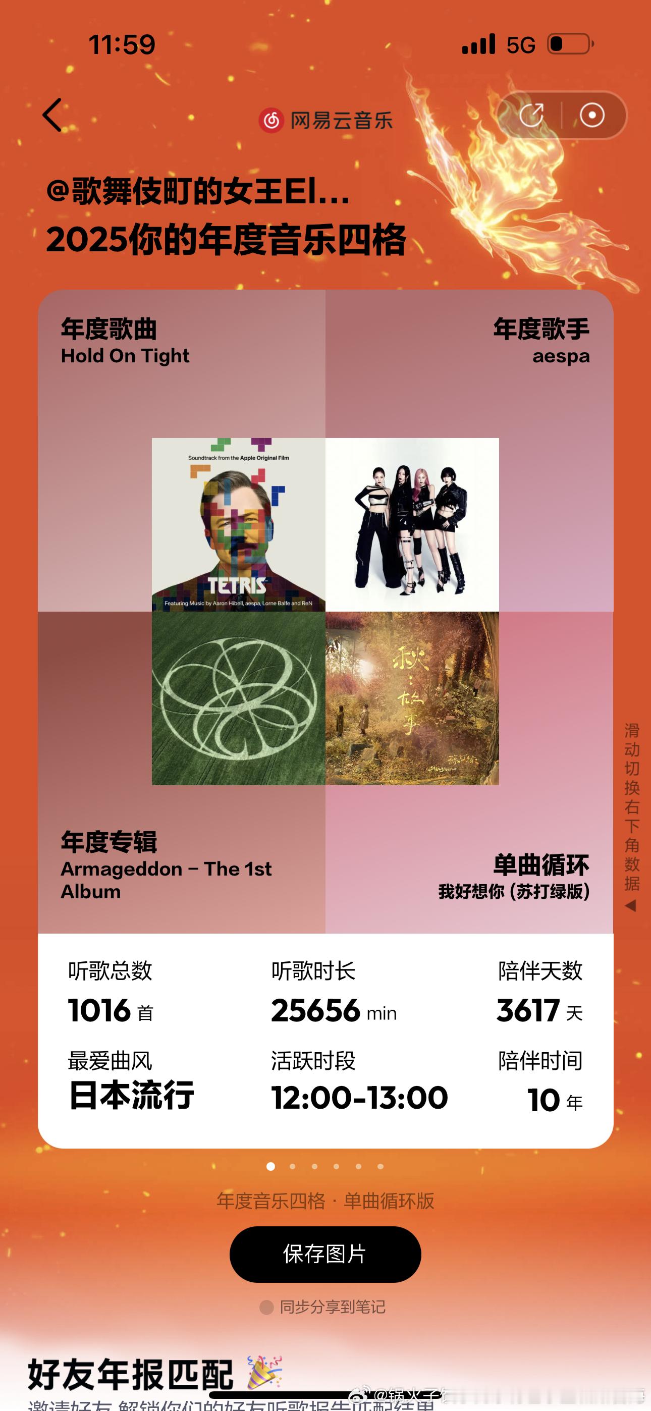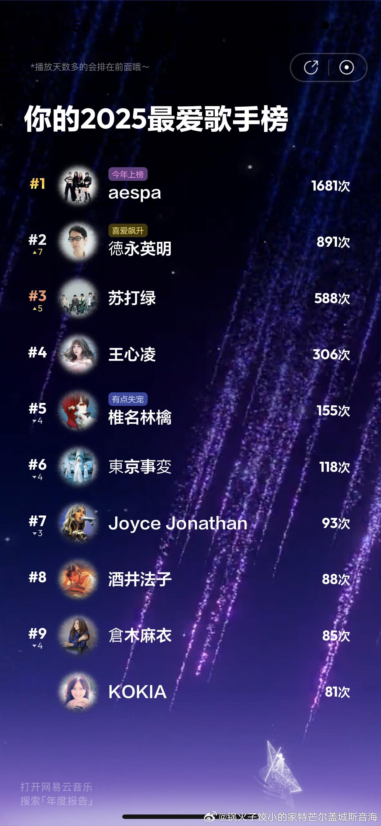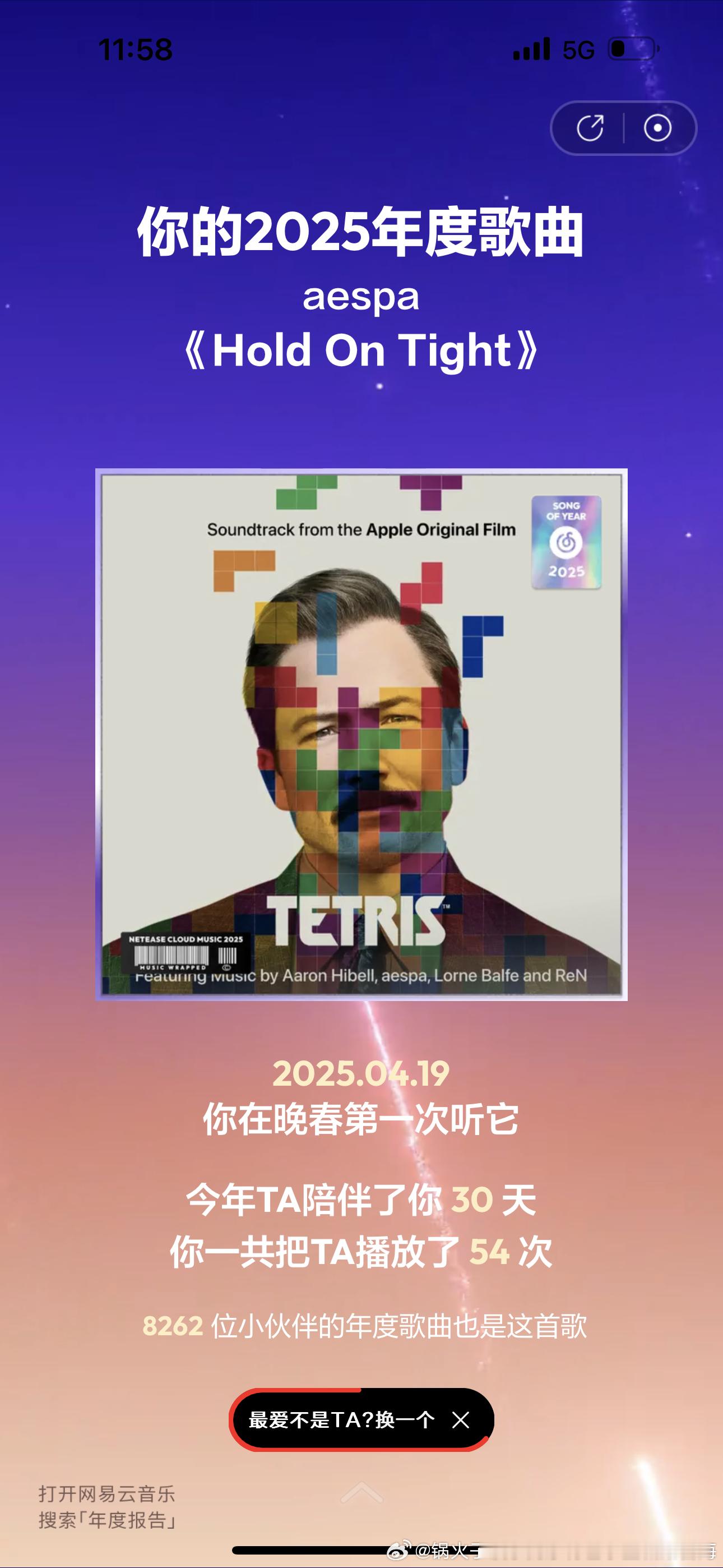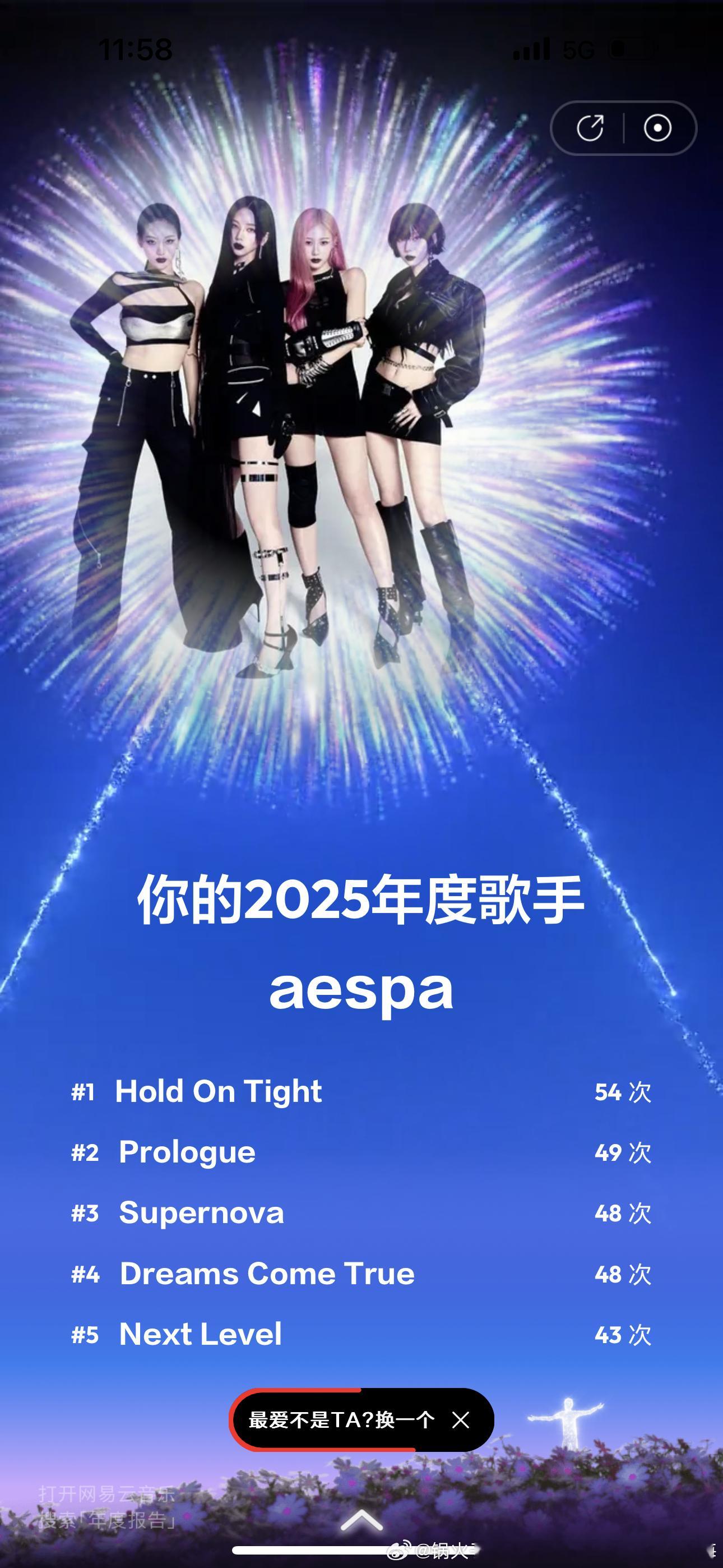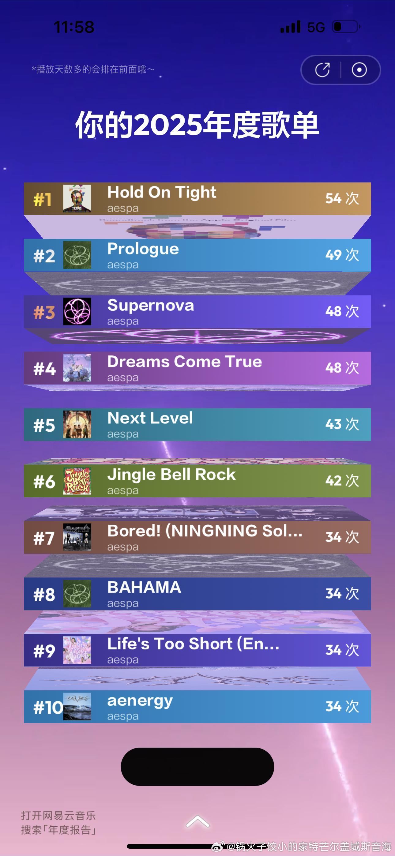 期盼着,期盼着,我的网易云年度听歌报告终于来了年度歌曲和年度歌手没有意外,就是aespa的Hold on Tight,但单曲循环居然是苏打绿的我好想你!总之,榜单上各种aespa!