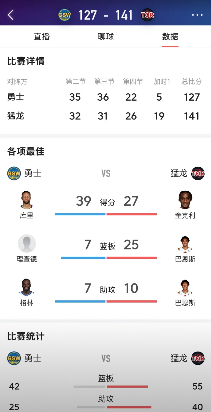 科尔:输球真的很难过,但是让对手巴恩斯拿到25个篮板,我实在接受不了,难道我们中锋和其它对手梦游了吗?现在球队中,干脏活累活的人真的没有了,大家赢球的欲望不强烈,球队问题很大,作为教练我有责任,我回去和队友好好总结一下,我们再也不想被对手打出19:5的加时了,这不是输球是耻辱。