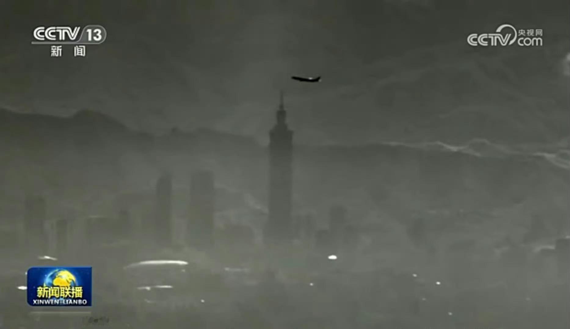 解放军无人机视角台北101大厦台伪遗像。