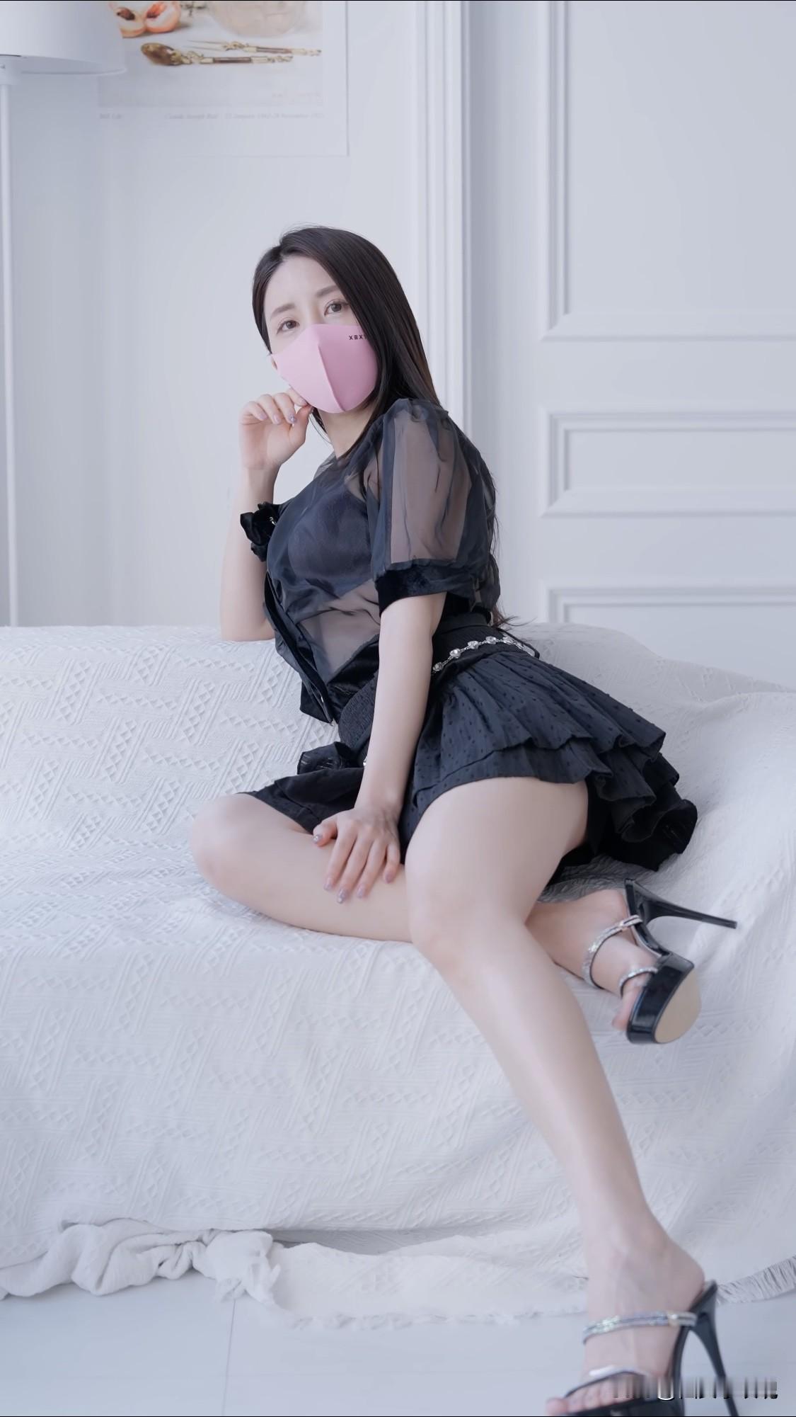 优雅黑纱蝴蝶结,粉色口罩显清新