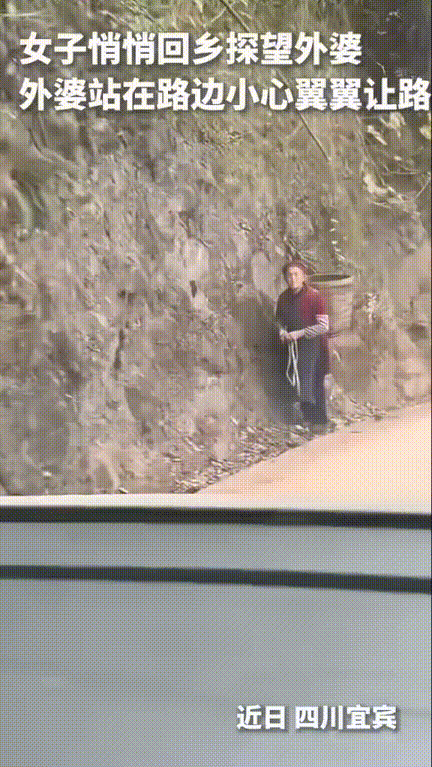 嘴角不自觉的就翘了!四川宜宾,婆婆背着竹篓赶路,隔着好远看到原处来了一辆车,婆婆立马紧靠山体小心翼翼的让路,没想到这辆车竟然停在了婆婆身边。 婆婆原本看着缓慢靠近的车还在往山体上靠着,想尽可能的多让出些路。没想到车靠近后车窗降下听到的竟是一句久违的“外婆”。 婆婆愣了好一会才突然勾起嘴角,一脸的开心。 对婆婆来说,这声呼唤比任何礼物都珍贵,它不是刻意的探望,而是山路偶遇的意外之喜,这份惊喜,足以让她开心好久。