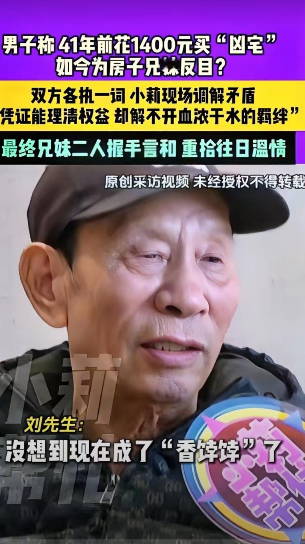 41年前1400元买的“凶宅”,如今被亲妹霸占!哥哥掏光家底反成冤大头 河南平顶山。一对兄妹为一套老房彻底撕破脸。41年前哥哥借钱买下“凶宅”给母亲妹妹住。如今妹妹竟一口咬定房子是自己的。 时间拨回1983年。1400块在当年堪称“巨款”。哥哥看中这套低价“凶宅”。厚着脸皮向亲友借钱凑齐房款。只为给母亲和待嫁妹妹安个家。自己则挤在单位宿舍。 那时房产交易没正规手续。只有一张签着哥哥名字的手写收据。哥哥念及亲情。把凭证交给母亲保管。此后数十年从没提过房子归属。母亲去世后妹妹独自居住。还掏钱翻新了门窗水电。 三年前哥哥退休。手头拮据想收回房子或出租。妹妹却当场翻脸。称当年是借哥哥名字买房。还拿出翻新单据和邻居证言当“证据”。 要命的是。那张关键收据早就遗失。卖房人离世。知情亲友或逝或忘。房子也没办过正规房产证。哥哥只能把妹妹告上法院。这场纠纷。说到底就是当年的“碍于情面”。酿成了如今的亲情裂痕。
