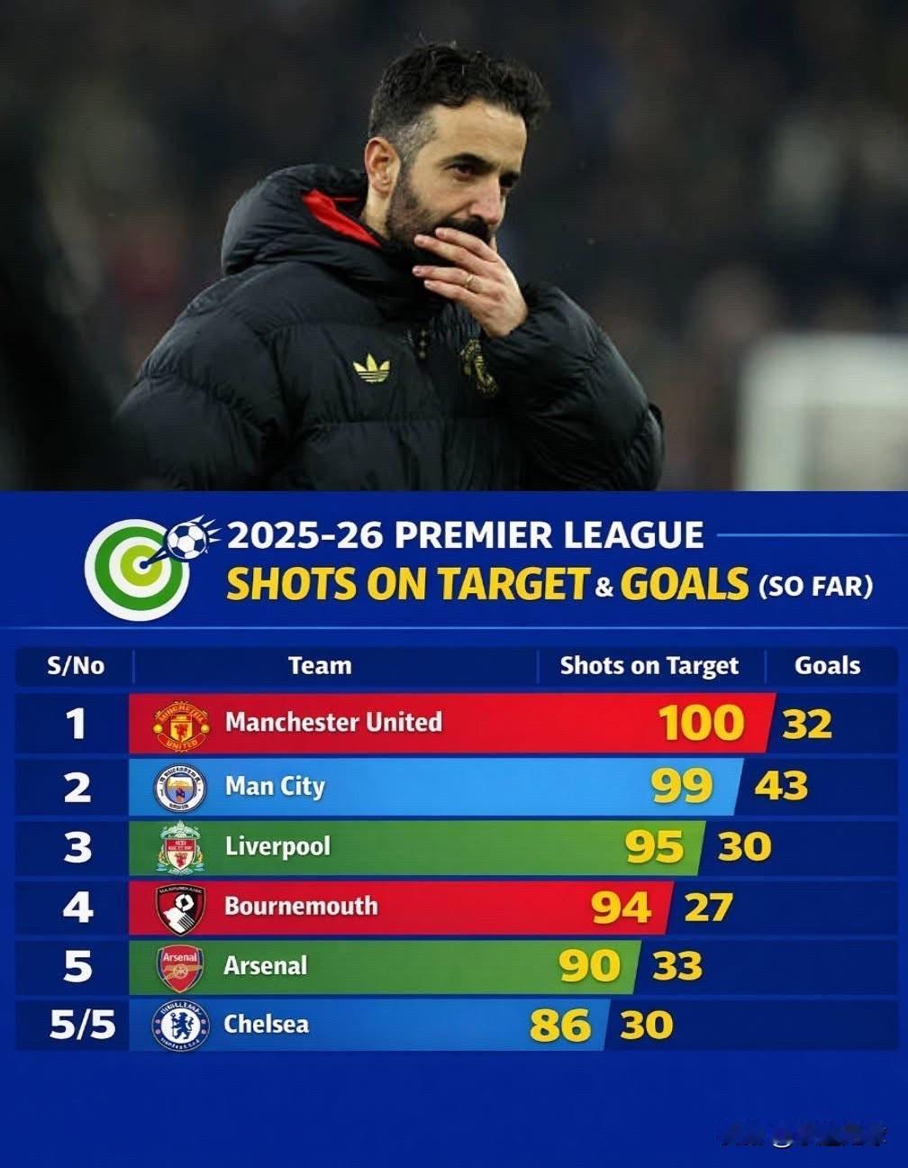☑️ 射正次数:100次——高于联赛其他任何球队。 ☑️ 击中门框:11次——证明他们持续制造威胁。 ☑️ 进球数:32球——与联赛顶尖球队持平。 然而…他们并未登顶积分榜。原因何在? 1、防守问题,曼联的防守体系在比赛中往往难以灵活调整。即便面对中游球队,防守站位的疏忽仍会给予对手可乘之机。 2、个人失误,几次关键失误让本可到手的胜利变为平局甚至败局。在势均力敌的比赛中,每一次触球都至关重要——失误可能直接决定结果。 3、细微差距,18场比赛100次射正却11次击中门框,说明球队创造了机会但未能高效转化。加之防守端的不稳定,积分榜排名未能如实反映其进攻数据。 4、核心结论,数据证明曼联在创造机会方面占据统治力,但足球不仅是数字游戏。战术纪律、防守警觉性以及关键时刻的专注度,才是将数据转化为积分的关键。 若曼联能巩固后防、减少失误,本赛季仍有望冲击前四名。