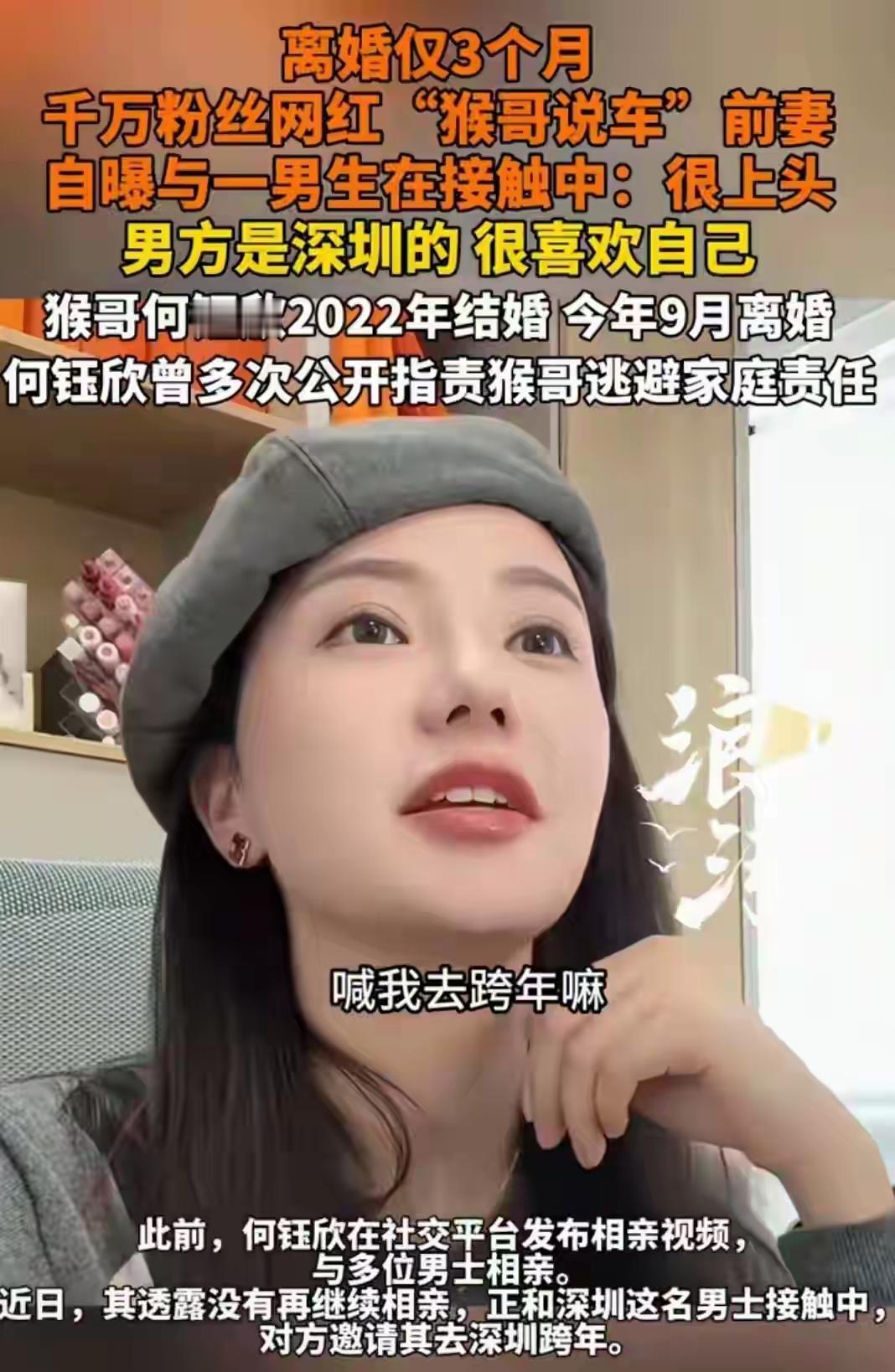 猴哥说车的前妻何钰欣,离婚不过短短三周,就大方自曝正和男生接触相亲中,这节奏属实是快到让人咋舌。 直播里她坦言相亲对象见面就送礼物,自己推脱半天还是被硬塞收下,直言没收礼的底气,这份坦诚倒是挺接地气。回想俩人当初因生育观念不合、婚后分居走到离婚,三年婚姻一地鸡毛,如今各自奔赴新生活也能理解。 只是猴哥一头扎进事业和新的相处对象,前妻这边火速开启新缘分,只能说成年人的感情里,爱过也好散场也罢,体面抽身、各自安好,其实就是最好的结局了。 猴哥说车前妻相亲