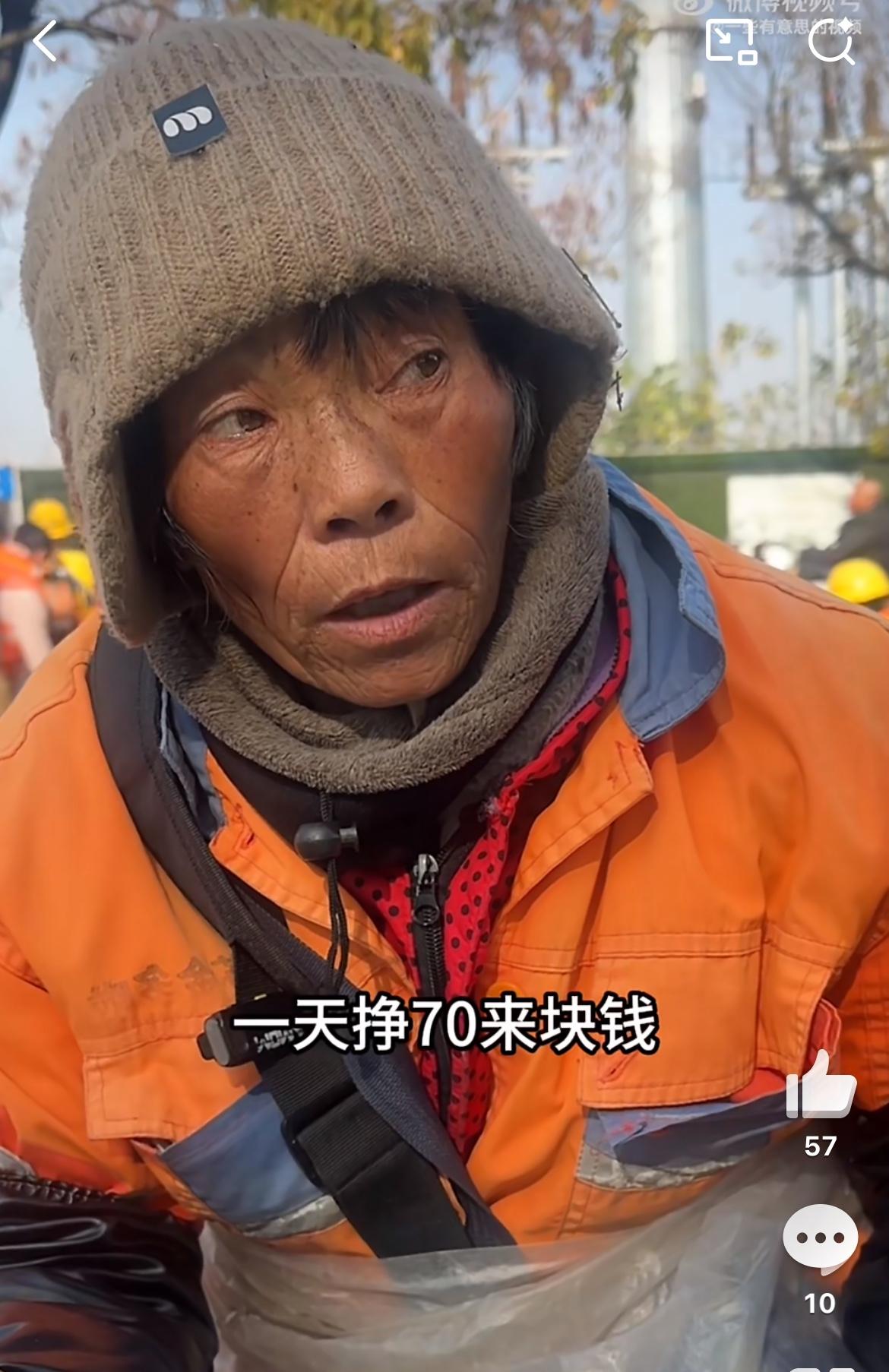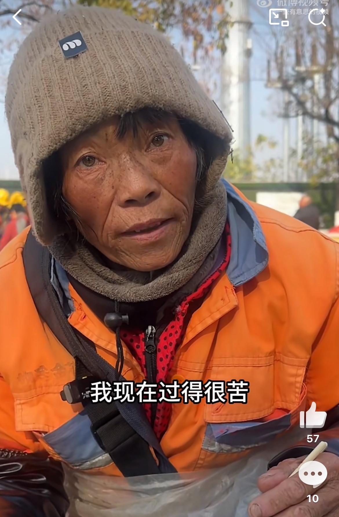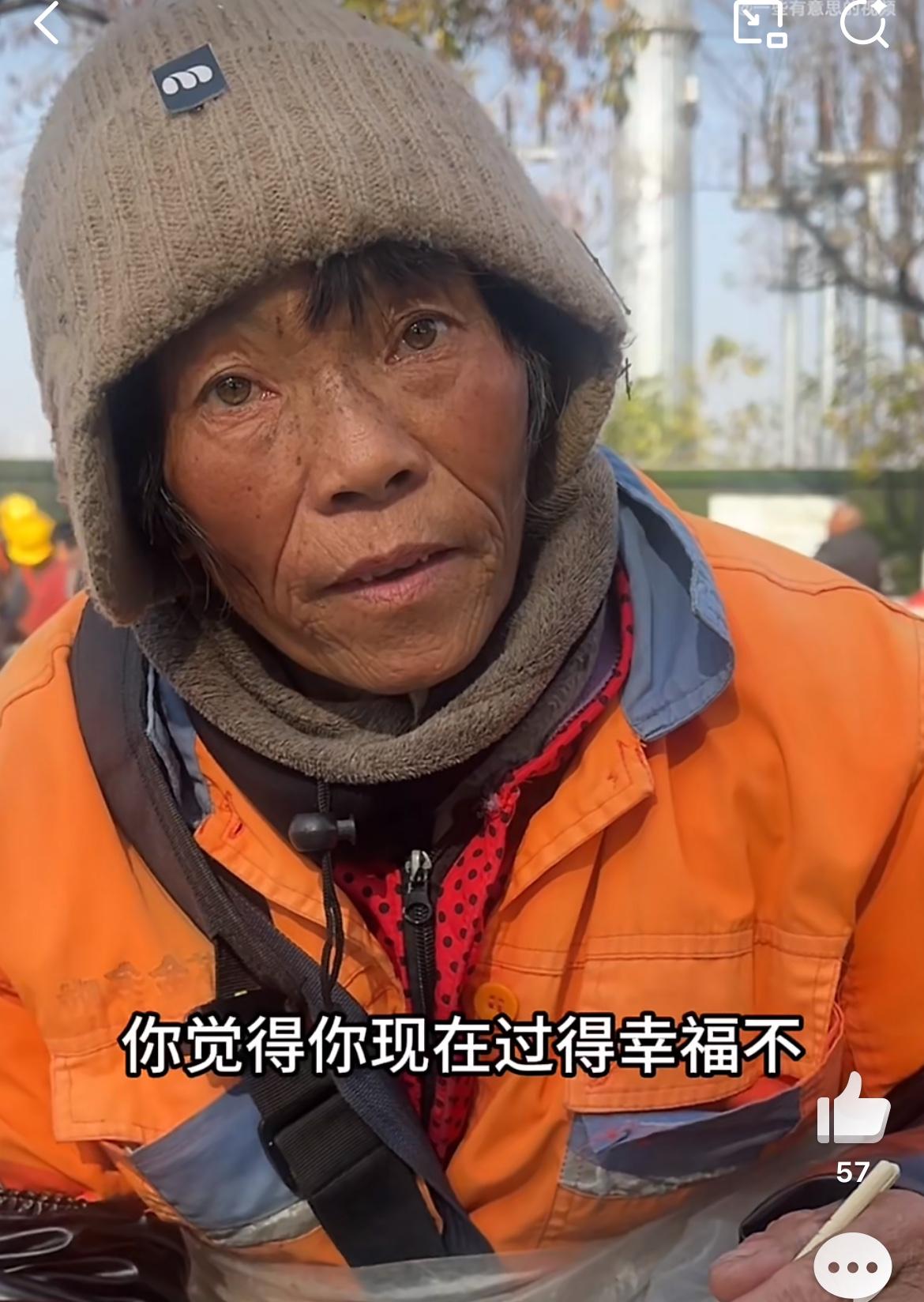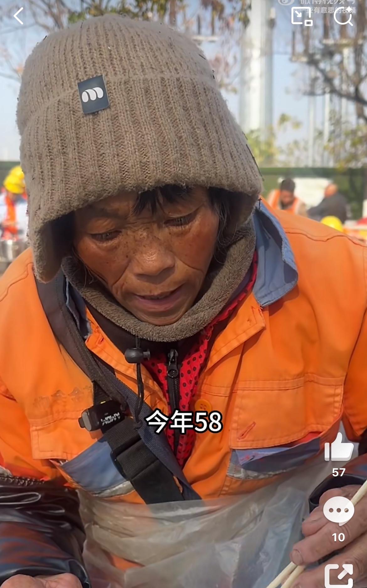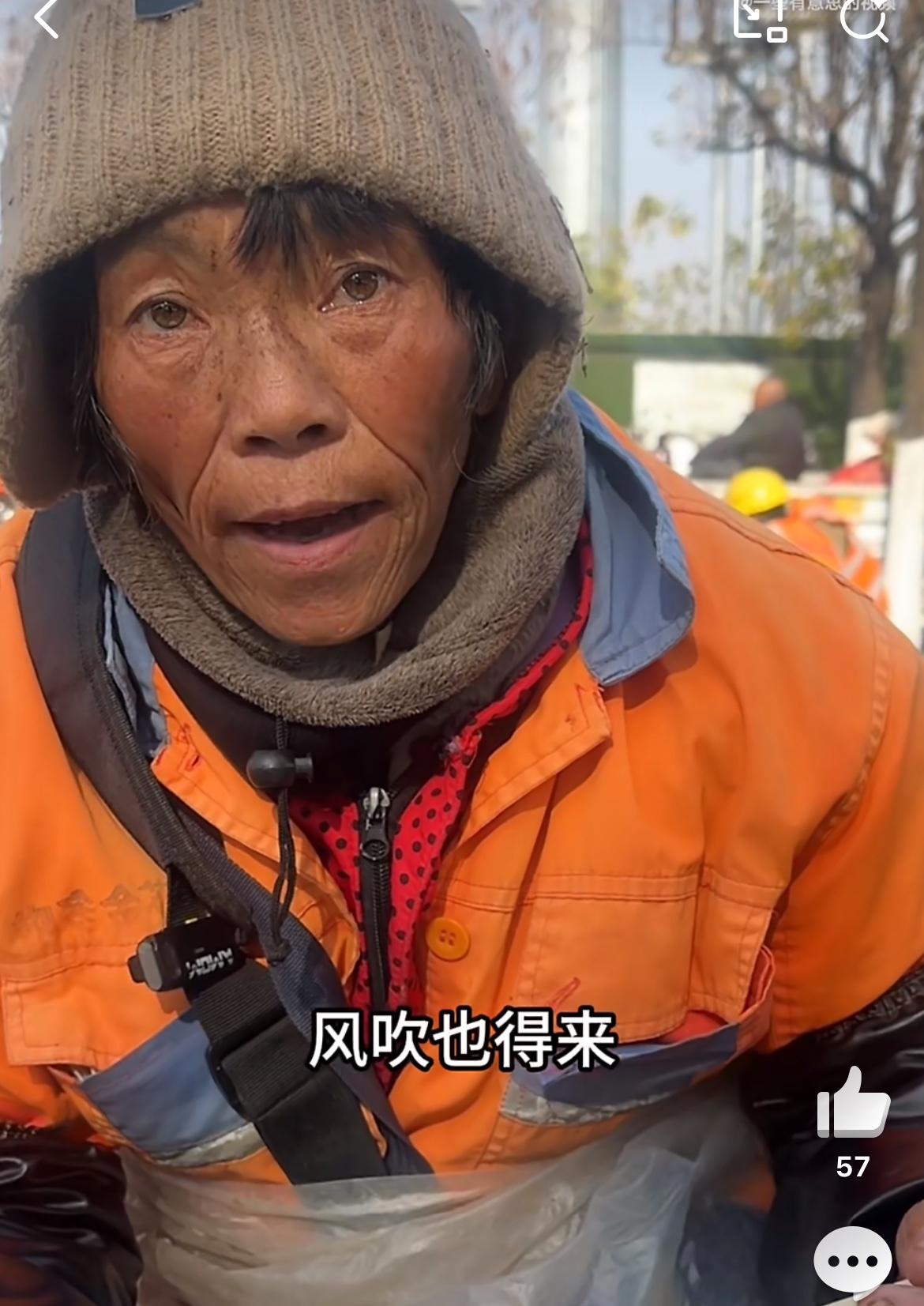 这个脸上写满沧桑的大妈才58岁,是一名环卫工人,一个月2300工资,几乎没有休息,每天早晨五点到下午五点半收工。她说不干,就没有活路。问她幸福吗?她直言现在很苦。5岁没妈,6岁没有爹,和一个妹妹相依为命,靠讨饭养妹妹,都是讨到先给妹妹吃,再自己想办法。环卫工人 环卫工阿姨